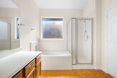 Welcome to this freshly painted 3-bedroom,2-bath home with an attached 2-car garage,combining comfort and functionality. Upon entering,you’re greeted by a welcoming dining room and an elegant arched hallway. The kitchen features natural wood cabinets and a charming breakfast nook right beside it,perfect for casual meals. The living room offers laminate flooring,a convenient pass-through to the kitchen,and direct access to the backyard,making indoor-outdoor living seamless. The primary suite boasts a luxurious soaking tub and walk-in shower for ultimate relaxation. Step outside to the fenced backyard with a covered patio,ideal for entertaining or enjoying quiet evenings outdoors. MLS# 7189388
