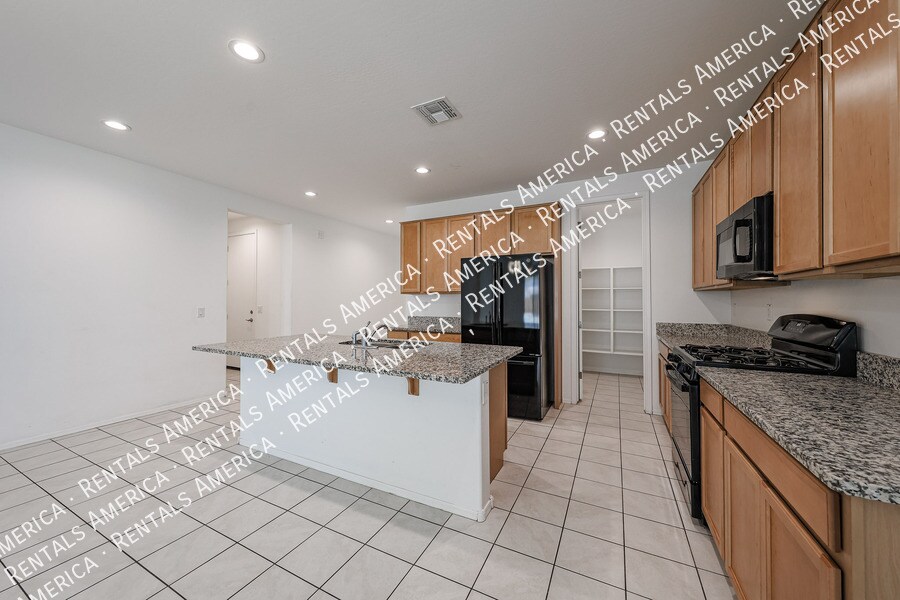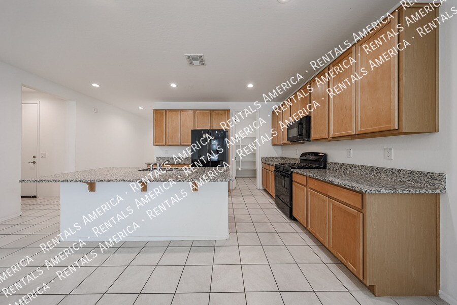 $500 OFF 1st Full Month's Rent if Move In by Nov 14th! Open to 6-Month Lease. Beautiful 5 BR / 3 Full BA in Tuscano Community, built in 2022. You will love this amazing open split layout. Kitchen features an oversized granite island w/ built-in sink & dishwasher, sleek black appliances, built-in microwave, gas stove, recessed lighting, and plenty of hardwood cabinets. Kitchen opens to large dining and family room with access to covered back patio. Suite includes large walk-in closet, double sink vanity, walk-in shower, linen closet, and private toilet room. Guest quarters and full bathroom just off entry. Large laundry room includes utility sink cabinets and washer & gas dryer. Lighted ceiling fans throughout. Tile in all livable areas and carpeted bedrooms. Please remove shoes, slipons provided while viewing the home. One Time Admin Fee: $300, Pet Deposit: $300/pet (if applicable), Service Fee: 2%. $39/month Resident Benefits Package, Helping Heroes Discount Available! Carpet Cats Allowed Ceramic Tile Disposal Dogs Allowed Dryer Garage Pets Allowed Washer
