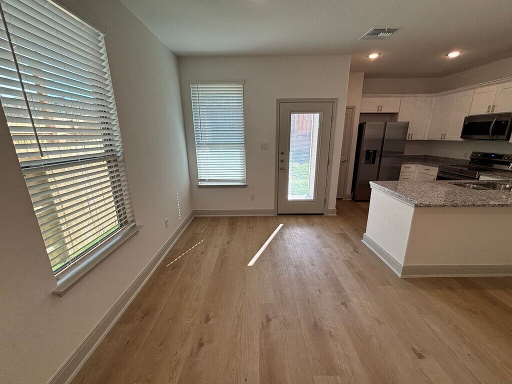 Discover modern living in this brand-new Townhome community by Rosehaven Homes! This spacious floorplan features 1,505 sq. ft. of living space with 3 bedrooms, 2.5 baths, and a 1-car garage. Step inside to find an open and inviting layout featuring luxury vinyl plank flooring throughout the main living areas, a bright kitchen with granite countertops, and stainless steel appliances (including a refrigerator). Enjoy 9-ft ceilings, abundant natural light and plenty of storage space. The upstairs retreat includes three generously sized bedrooms and well-appointed bathrooms, perfect for comfortable living. Energy-efficient features include foam insulation and an electric car charging plug. Located in the heart of Magnolia Village at Cinco Lakes, this community offers easy access to Medina Base and Lackland AFB, making it an excellent choice for convenience and lifestyle. Rental Requirements: Pets Welcome. Monthly gross income equal to at least 3 times the monthly rent. Rental history must not include broken leases or evictions. 600 Credit score. Income and Background check. $75 application fee for each occupant over 18 years of age. $1,575 security deposit. Pet deposit of $400 per approved pet.