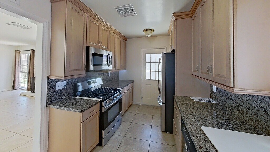 This move-in ready home in West Hills features 4/ bedrooms and 2/ baths 1,372 sq. ft. It offers a nice open living and dining area with a cozy fireplace. The remodeled kitchen includes granite counters, ample cabinets, a large walk-in pantry, and a kitchenette area. Stainless steel appliances, including a refrigerator, gas range, microwave, and dishwasher, are included. All bedrooms are well-sized, with one featuring built-in shelves suitable for an office. The home has tiled floors throughout. Property boasts a fully fenced backyard with a grassy area and a large concrete patio, perfect for entertaining. Additionally, it includes a 2-car detached garage and gated extra parking suitable for an RV or boat. It is conveniently located to near Ralph's supermarket, Topanga Mall, Fallbrook Mall, the Post Office, and West Hills Medical Center. One small/medium pet will be considered with pet deposit. LRS Realty & Management Inc. DRE#01820556 Tel: DRE#01709588 "We are an Equal Housing Provider and follow all Fair Housing Laws"