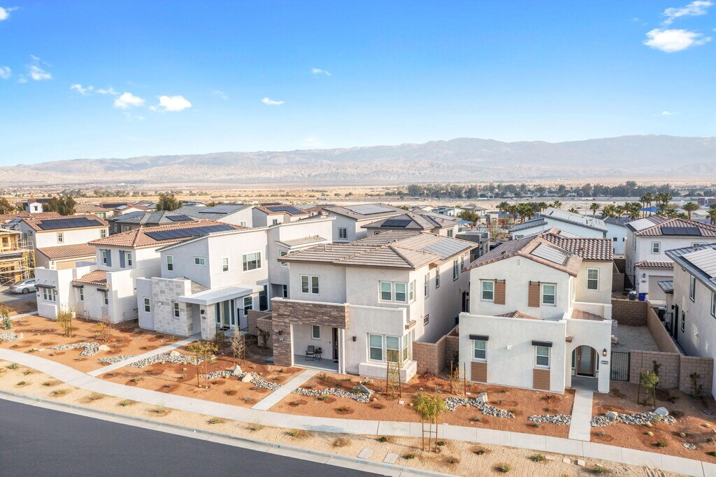 Experience modern desert living in this beautifully built 2024 home,offering 2,004 sq. ft.,3 bedrooms,and 3 bathrooms. Step inside to discover tile flooring,soaring ceilings,and a bright open-concept layout that creates a clean,contemporary feel throughout. The home is thoughtfully appointed with modern appliances,window coverings,and an attached two-car garage for everyday convenience. The finished outdoor space offers a clean,low-maintenance setting--perfect for relaxing or entertaining without the upkeep of traditional landscaping. Located within The Grove,residents enjoy easy access to exceptional resort-style amenities,including pools,spas,a fitness center,pickleball and bocce ball courts,and more--all just a short stroll away. Perfectly situated just minutes from Acrisure Arena,as well as popular dining and shopping destinations,this home offers the ideal blend of comfort,style,and accessibility. Long-term lease available. Schedule your private showing today. MLS # 219145393