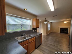 Beautiful 4 bedroom/2.5 bathroom home in Converse available now for short term rent! This spacious home features two living areas, a formal dining area, and a breakfast nook! Laminate flooring throughout makes maintenance easy. The kitchen boasts beautiful countertops and opens to the living room, with a fireplace. All bedrooms are located upstairs. The primary bedroom is generously sized and has a lovely en-suite bathroom featuring a garden tub, separate standing shower, double vanities, and a walk in closet. The three guest rooms are all comfortably sized and the upstairs guest bathroom includes a tub/shower combo. This home is conveniently located just a short drive from Interstate 35 and Loop 1604, making commutes easy, and is just a 15 minute drive to Randolph Air Force Base. Available for rent with lease end/move-out date of August 15, 2026. Apply now!