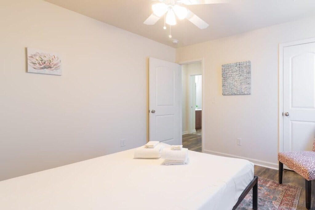 Feel at home in this 3-bedroom, 2.5-bathroom house in a fantastic neighborhood, just 15 minutes from Fort Moore and downtown. Once inside, you will find an open-concept living room and kitchen. The living room has two sofas (one is a queen sofa bed!) and a large SmartTV. The kitchen has all the essential cookware and dinnerware, and there are two dining tables for meal times. Upstairs are all three bedrooms, open sleeping space, and two full bathrooms. Bedroom one has a king bed, bedroom two has a queen bed, and bedroom three has two twin-over-twin bunk beds. There is an additional sleeping space tucked away in an open nook upstairs, which has a double bed with a twin trundle underneath. Out back, enjoy a dip in the private pool and a grill is available for use! Pets are welcome with a fee. A pack 'n play/travel crib and a vacuum are available upon request. This is a quiet and safe residential neighborhood. Most all families are current or retired military families. The neighborhood is actually at the top of a ridge that overlooks part of the Fort Moore Training Area, so close you can hear soldiers calling cadence in the morning. You will need to be able to drive or get an Uber or Cab because there is no public transportation in this neighborhood. Quiet hours are between 10 PM and 7 AM. If our cleaning crew reports any signs of smoking cigarettes, vapes, e-cigs, pipes, etc. (smell, ash, etc.) in or around the home, an automatic $500 damage charge will be incurred. The same charge applies if cigarette butts are found outside of the home. If marijuana is smoked in or around the home a $500 fee will be charged, and details about the reservation may be turned over to the appropriate authorities. Parties are prohibited at the home. Other events are permitted at the home only with prior approval. If you violate quiet hours and disturb the neighbors, we will cancel your reservation; you will be required to leave the property immediately and you will not be eligible for any refunds. You will be responsible for any damage to the home or its furnishings during your stay. There is a $100 charge for third party trash removal if an excessive amount of trash is left at the property. Pets must be crated when they are left unattended in the home. We do not allow pets on furniture or beds, and all waste must be cleaned up from the yard. If there is evidence of pet hair on the furniture, excess hair in the home, stains, or waste found in the yard or home, you will be charged the cost to clean this. Guests must abide by all rules posted on premises regarding the safe use of any amenities. By booking this property, guests waive any and all claims of liability against homeowner or any property management entity affiliated with homeowner relating to the use of these amenities whether due to loss, damage, injury or death. Includes Registration Number: STVR-11-23-7545 [SI]