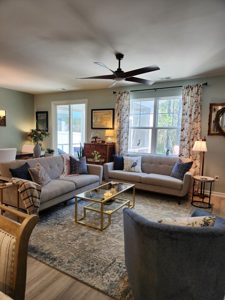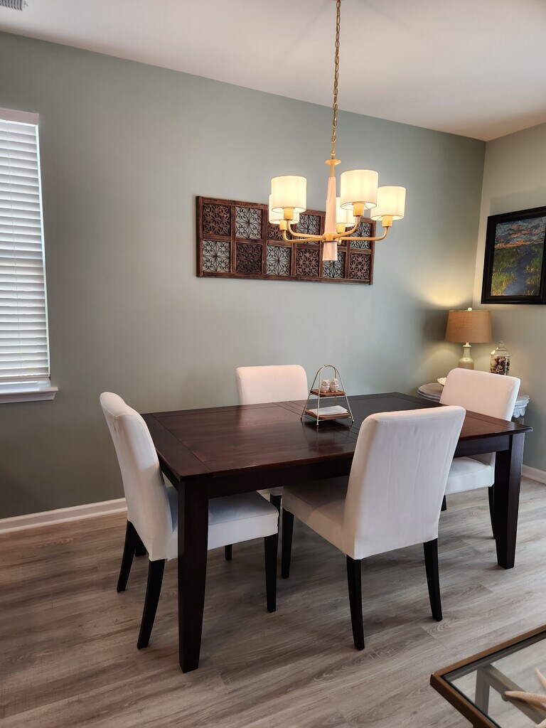Our home is conveniently located near North Myrtle Beach (4.9 miles). We are close to the action but just far enough out of the crazy. We purchased our home new in 2021 and have added many upgrades. This is not a stripped down investment property. Hidden Brooke is a quiet neighborhood with awesome neighbors. Lots of green spaces. You will have access to a pool and fitness center within walking distance. We are also right across Hwy 90 from La Belle Amie vineyard and close to North Myrtle Beach High School. Our home is two stories and with a widened driveway that will accommodate two to three vehicles plus a two car garage. Our large primary bedroom is located on the 1st level and features a upgraded ceiling fan and "bump-out" sitting area. The primary bath has a 5' walk-in shower, two sinks, separate toilet and a large walk-in closet. Our home has custom paint throughout and a whole-house water filtration system. The kitchen has all appliances (Gas stove/oven) and a reverse osmosis water filtration system. There is a bonus den upstairs adjacent to the three upstairs secondary bedrooms and a full bathroom. The garage has built-in storage racks and a large utility sink/Dog wash (36" wide). The home backs to a wooded wetlands area, providing privacy. The backyard is fenced in with a screened in porch and large outdoor patio with natural gas connection for a grill. The lawn is irrigated. The home is being rented unfurnished. This is a one year renewable lease. Tenant pays for all utilities. Owner responsible for HOA dues. No smoking. Pets OK. $200 pet deposit. Washer and dryer included. Rent must be set up on automatic monthly payment, due at the first of each month. The application process will be completed through Avail and will include background and financial checks. No street parking allowed in this neighborhood. Also commercial wrapped vehicles are not allowed in neighborhood. No smoking inside. Terms negotiable.