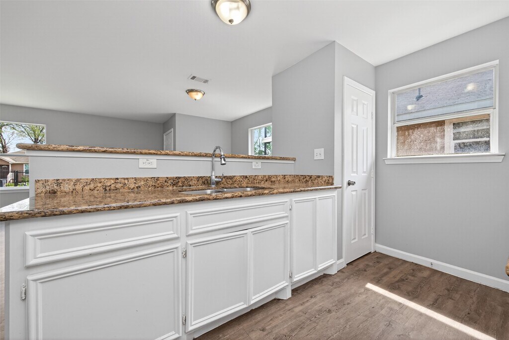 One-story,three-bedroom,two-bath home for lease on Dyer St,featuring an open-concept living room and kitchen with white cabinetry and granite countertops. A range/stove will be installed before move-in. Luxury vinyl plank flooring runs throughout the main areas,and a utility room is located inside the home for added convenience. The property includes a backyard green space and sits in a great location near W. Montgomery,with quick access to 249 and I-45. MLS# 26772738