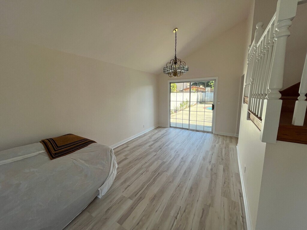 Spacious Reseda home w/tons of great amenities! Features include: two-story floorplan w/over 2000 SQF of space; 4BR + 3BA; living room w/vaulted ceilings + fireplace; kitchen w/appliances included (stove/oven, new dishwasher + trash compactor); formal dining area; family room; upstairs master suite w/full bath; new laminate wood flooring throughout; washer + dryer; backyard w/large patio; newly re-plastered pool; new solar panels; gardening + pool service included; attached 2 car garage; pets allowed w/owners approval. For more info, or to view this property, please call us at . (If you are having trouble viewing any part of this listing, including pictures or maps, please try using Firefox []).