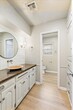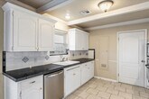 The property located at 7522 NW Stonegate is a charming 3 bed 2.5 bath house, featuring a stylish and contemporary touch. The first thing you will notice when entering the living area and kitchen are the beautiful white cabinets with black countertops that ran along the boundaries of the room. The cabinets and countertops create a clean, modern feel to the interior, while providing ample storage and counter space. This beautifully appointed kitchen and living area is perfect for hosting family and friend gatherings, dinner parties, or simply entertaining. The kitchen is fitted with modern appliances that deliver both function and style, such as a refrigerator, stove, microwave and dishwasher. In addition to the stunning kitchen, the property boasts a wonderful laundry room and plenty of shelf space to store washing supplies. Moreover, the property also features a storm shelter, which is becoming one of the most sought-after amenities for many homeowners nowadays. The storm shelter provides safety and security during extreme weather conditions, giving peace of mind to the occupants of the house. Overall, this wonderful 3 bedroom, 2 1/2 bathroom property at 7522 NW Stonegate offers an enviable combination of style and functionality, with its beautiful kitchen, convenient laundry room, and safety-enhancing storm shelter. It is a fantastic choice for anyone seeking a modern home with ample amenities and protection in the area.