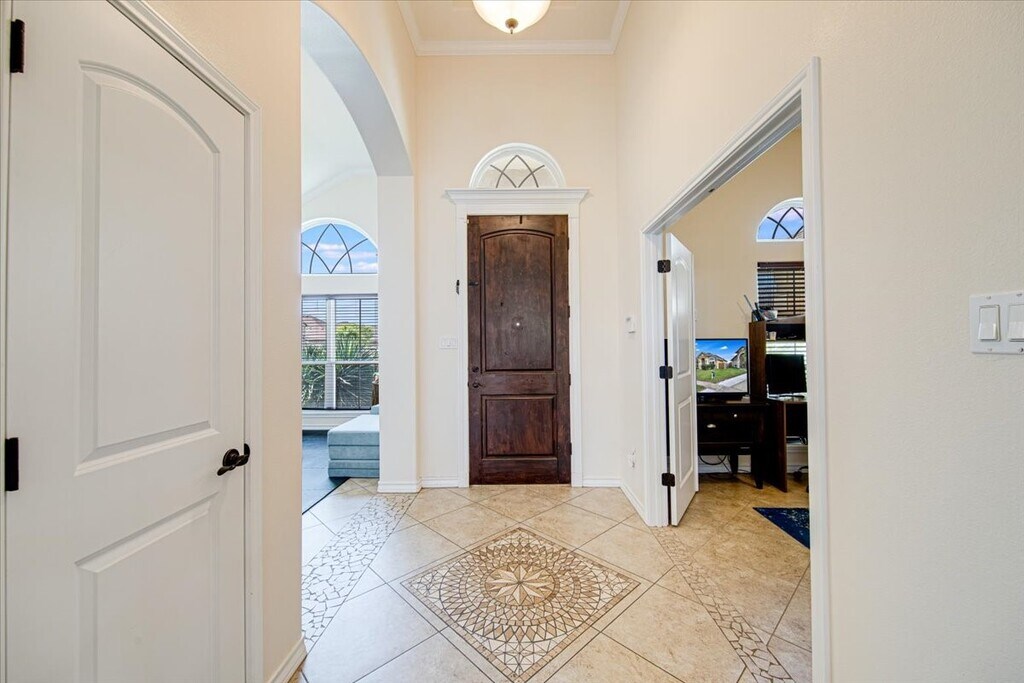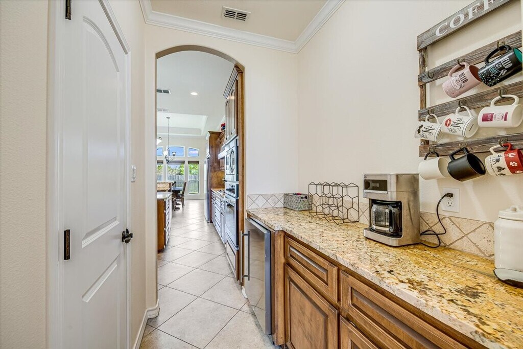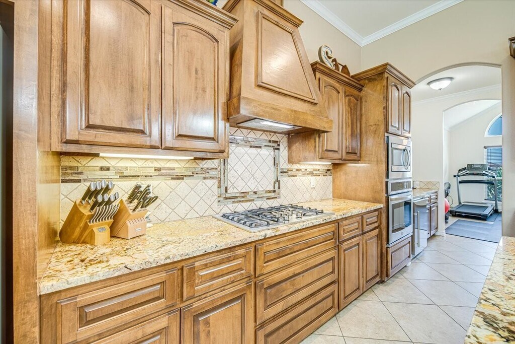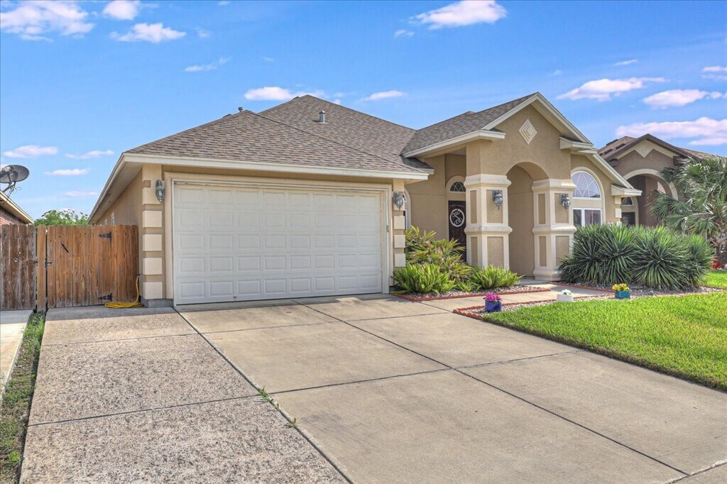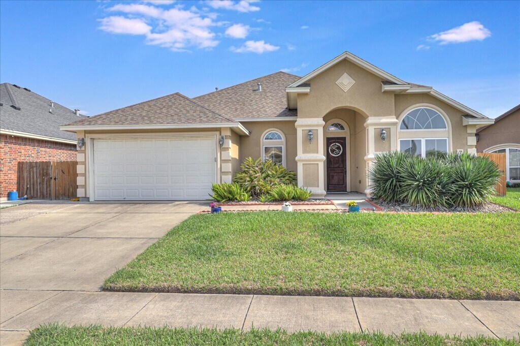 This stunning executive 2,482-sf stucco Southside home,built in 2014 by Golden Real Estate & Construction,was formerly a model home and showcases high-end finishes and thoughtful upgrades throughout its spacious 4-bedroom,3-bath layout. The open concept floorplan features soaring vaulted ceilings,abundant natural light,and a 3-way split bedroom layout. The chef’s kitchen is designed for entertaining,complete with granite countertops,huge island,gas cooktop,stainless steel built-in appliances,custom cabinetry,decorative tile backsplash,butler’s pantry,and coffee bar. The primary suite includes dual walk-in closets,a jetted tub,a large walk-in tile shower,and dual vanities. Additional features include tile flooring throughout most of the home,crown molding,upgraded light fixtures,built-ins,and a fireplace. Outside,enjoy a spacious fenced backyard with no rear neighbors and a covered patio. Pets allowed with owner approval,$25 monthly pet rent (per pet),max 2 dogs. MLS# 40458227