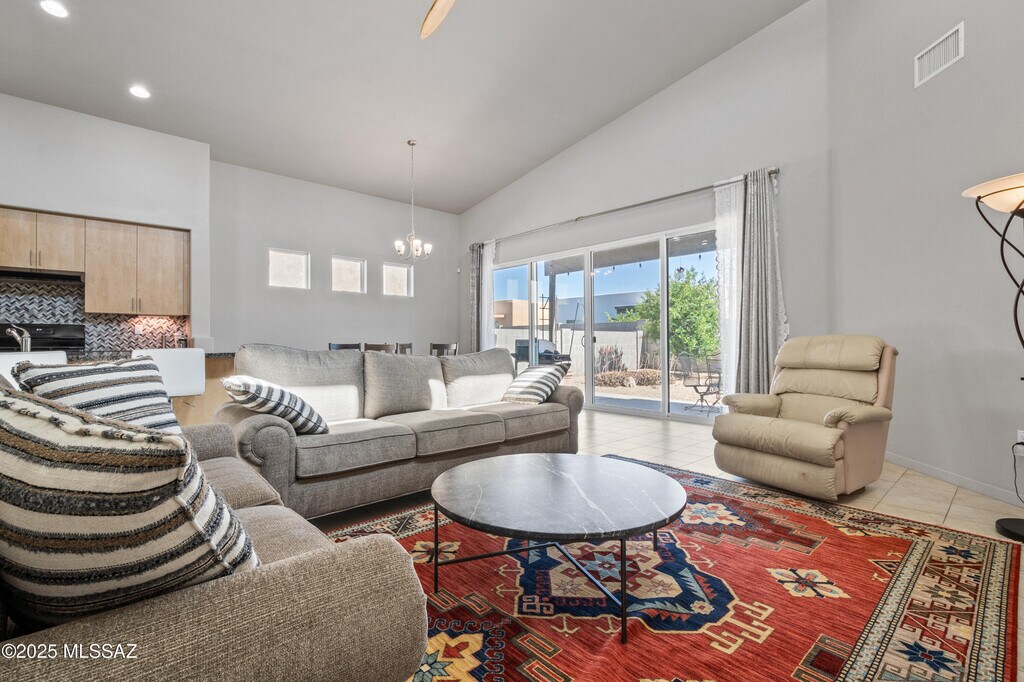 This 3 Bed, 2 Bath is ready for you! Built in 2018, this home offers a spacious, light, and bright contemporary layout. You'll notice the high ceilings and an open great room that features a modern kitchen with granite counters, new cabinetry, and a large pantry, alongside separate dining/living areas. This split floorplan provides ample privacy, with an oversized primary suite featuring a spa-like bathroom and substantial walk-in closet, plus the flexible den space. Bedrooms 2 and 3 are on the opposite side of the house and share a guest bath. Enjoy outdoor relaxation on the covered porch and benefit from an interior laundry room and a two-car garage. Tucked away near Udall, this home is perfectly situated near shopping, restaurants, hiking and more!