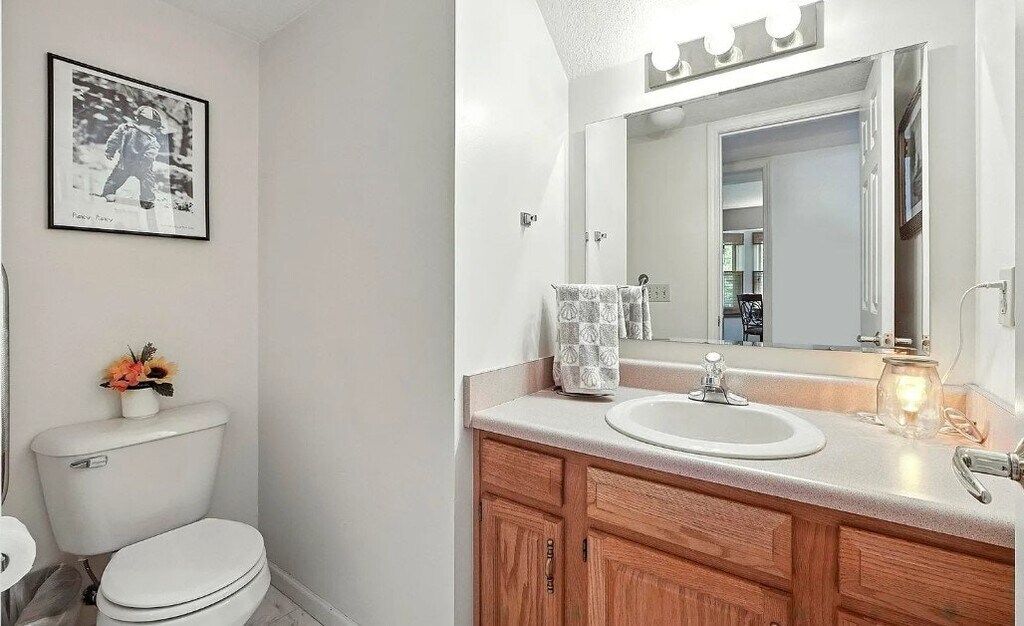 Step inside this stunning move-in ready two-story and feel instantly at home. With 1,951 sq. ft. of stylish living space, this 3-bedroom, 2.5-bath beauty blends comfort, elegance, and thoughtful updates in all the right ways. The main-level Master bedroom boasts a spa-like bath with double sinks, a relaxing garden tub, walk-in closet, and separate shower. The vaulted ceilings in the open-concept living area create an airy, light-filled atmosphere, perfectly complemented by bamboo hardwood floors and a cozy fireplace
