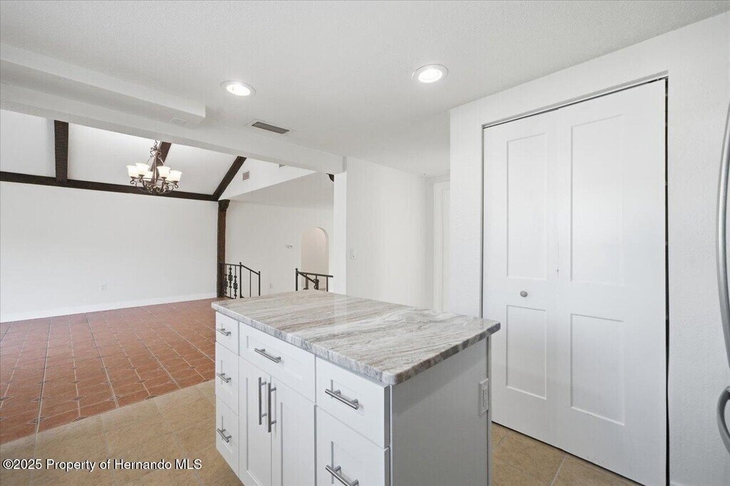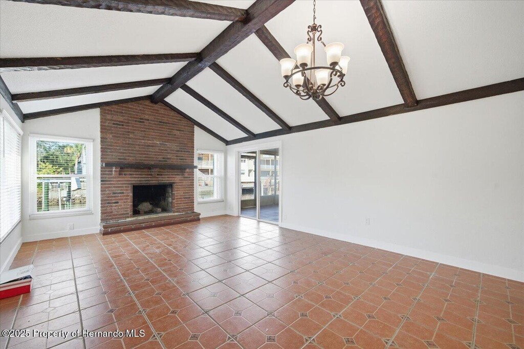 Welcome to 7527 Hatteras Drive, a beautifully maintained waterfront home located in the heart of Hudson, Florida. This spacious residence offers a unique split-level layout with vaulted ceilings, exposed wood beams, and terracotta tile flooring throughout the main living areas. The open-concept kitchen features white cabinetry, stainless steel appliances, and elegant granite countertops, perfect for both cooking and entertaining.The living room is anchored by a charming brick fireplace and large windows that fill the space with natural light. A screened-in sunroom overlooks the tranquil canal and private dock, offering a serene retreat for morning coffee or evening relaxation. The primary suite includes an en-suite bathroom and generous closet space, while the additional bedrooms are well-sized and versatile.The home also includes a modern utility room with a sink a covered carport, garage, and a landscaped front yard with tropical palms and garden beds. Located just minutes from US-19, this property provides easy access to shopping, dining, and Gulf Coast beaches.Minimum rental term is six months and one day. First month's rent, last month's rent, and a security deposit are required. Dogs are permitted with prior approval. Contact us today to schedule a private showing and make this waterfront gem your next home.