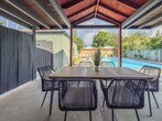 Completely remodeled rental, available for IMMEDIATE OCCUPANCY! Amenities include: single-story, open floorplan; 3BR + 2BA; over 1800 SQF; living room w/fireplace; dining area; upgraded kitchen w/center island, granite countertops countertops + stainless steel appliances (refrigerator, stove/oven + dishwasher included); family room w/separate entrance to backyard; primary suite w/full bath featuring double sinks; wood laminate flooring throughout; central HVAC; recessed lighting + dual pane windows; inside laundry w/stacked washer + dryer hook-ups; backyard w/pool + covered patio; citrus tree; gardener + pool service provided; driveway for parking; small pets considered w/owners approval. For more info or to view this listing, please call us at . All showings must be scheduled through our office + confirmed prior to appointment. Applications, our Application Instructions + Pet Policy are available through our website, under the Vacancies tab. Occupants 18 or older must submit an application. Good credit, rental history + VERIFIABLE income are required.