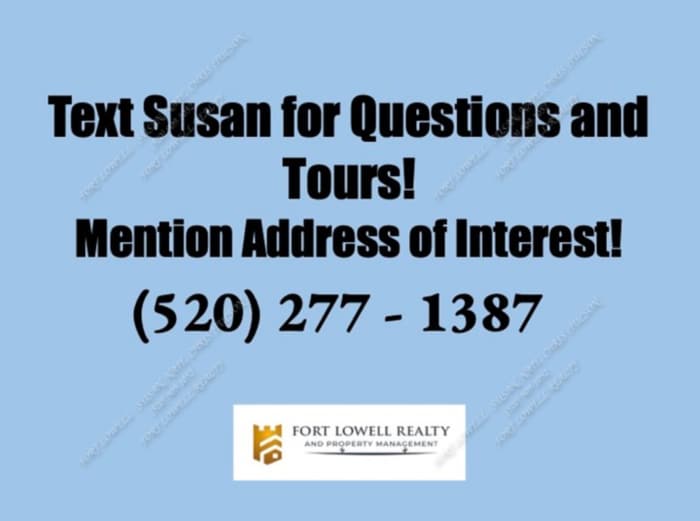 Welcome to this stunning 3-bedroom, 2-bathroom end unit located in the heart of Tucson, AZ. This home boasts a wealth of amenities designed for comfortable and convenient living. The interior features a mix of tile and laminate wood flooring, vaulted ceilings, and an abundance of natural light that enhances the overall aesthetic. The kitchen is equipped with an electric stove and oven, a dishwasher, a refrigerator, and a microwave, making meal preparation a breeze. The home also includes a washer and dryer, ensuring laundry days are hassle-free. The property comes with two reserved carport spaces, providing ample parking. Enjoy the outdoors in your private yard or under the covered patio, perfect for entertaining or relaxing. As a resident, you'll also have access to the community pool, a great spot for cooling off during those hot Arizona summers. With ceiling fans and central AC, you can stay cool indoors as well. Experience the perfect blend of comfort and convenience in this Tucson gem. Pets are welcome with an extra monthly pet rent and non refundable pet fee. All utilities are tenant's responsibility. $162 monthly amenity fee is tenants responsibility. Kenyon Terrace HOA covers common area maintenance, front yard maintenance, garbage collection, street maintenance and community pool maintenance. Text Susan S. to View: Equal Housing Opportunity. Fort Lowell Realty & Property Management. Contact us to schedule a showing.