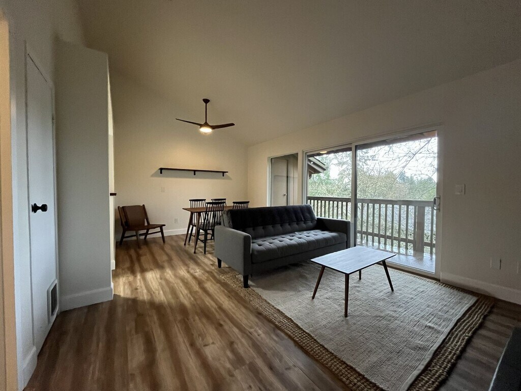 Welcome home to this beautifully renovated 1-bedroom, 1-bathroom condo offering 572 square feet of thoughtfully designed living space in the desirable West Haven-Sylvan community. With rare direct ground-level access and a private walkway leading to the entrance, this home combines comfort, convenience, and modern style in a peaceful, established setting. Step inside to a bright, open-concept living area featuring vaulted ceilings and tall windows that fill the space with natural light. The spacious living room showcases a cozy wood-burning fireplace and durable LVP flooring throughout, creating a warm yet contemporary feel. The versatile layout easily accommodates a variety of furniture configurations, making it ideal for both everyday living and entertaining. Just beyond the living area, the formal dining space is enhanced by a ceiling fan and seamlessly connects to the kitchen. Designed with both functionality and style in mind, the kitchen features modern appliances including a stainless steel dishwasher, electric stovetop and oven, full-size refrigerator, and a deep single-basin sink. Wood countertops and light brown cabinetry provide ample storage while complementing the home’s updated aesthetic. The generously sized bedroom offers a large closet and direct access to the en-suite bathroom, complete with a long single vanity and a tub/shower combination with sliding glass doors. An attached private balcony with exterior storage adds additional flexibility and outdoor enjoyment. This well-maintained community offers resort-style amenities including a pool, hot tub, sauna, indoor fitness center, and convenient community laundry facilities. An assigned parking space located just steps from your front door ensures ease and accessibility for daily living. Ideally situated near local favorites such as Cornell Farm, Biscuits Cafe, Amaterra Winery, and QFC, this location offers convenient access to shopping, dining, and recreation while maintaining a quiet residential atmosphere. This turnkey condo delivers modern upgrades, exceptional amenities, and a prime location—an ideal opportunity to enjoy low-maintenance living in one of the area’s most sought-after communities. **Open Application Period (02/16/2026)** Call or Text Our Leasing Agent to schedule a showing! English Speaking Spanish Speaking YouTube Link: Coming Soon Visit our website to apply and view other homes we have available! Do you need property management services? Maximize your income and cut your costs!