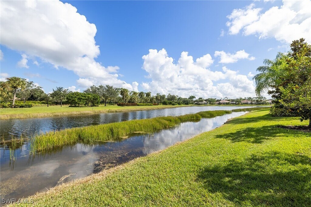 Villa Home with water view in beautiful gated Verona Walk. This two bedroon/2 bath plus den property has an open floor and a two-car garage with lots of storage attached to the laundry room. The white shaker cabinets in the kitchen and the new large open bar area are stunning. Granite countertops in kitchen with new refrigerator and microwave with new range on the way. You will love the extra open den space and front-to-back layout looking out to quiet landscape and water. Huge screened lanai. Lots of fans and fixtures have been replaced,too. You have two large walk-in showers. There are many closets and storage areas throughout. Verona Walk has a Town Centre with a large resort pool,Lap pool,fitness center,tennis courts,gas station,post offices,salons,cafes,and restaurants. Farmer's Market and car wash. Lots on site for you to do. Walk or ride through the well-maintained community with many water features and bridges.