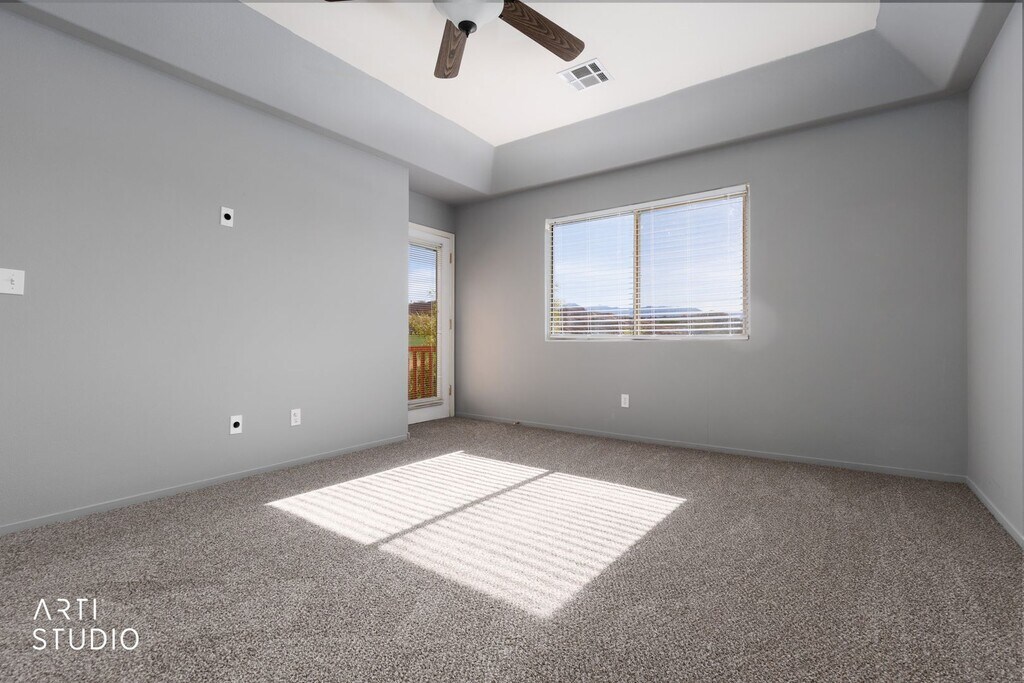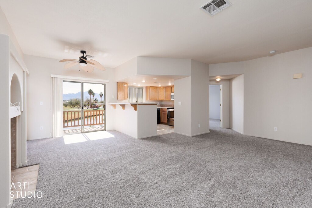 This Enchantment 2 Bedroom, 2 Bath Condo has a great golf course view & view of the water. Brand new carpet and paint! The condo has an open floor plan with a fireplace and green views in every direction from both balconies. The primary bedroom is spacious and has access to the balcony. The second bedroom offer the same to the second balcony. Do not pass up the opportunity to live in a community with a swimming pool and access to tennis courts a gym and so much more. 1 Year Lease Required.