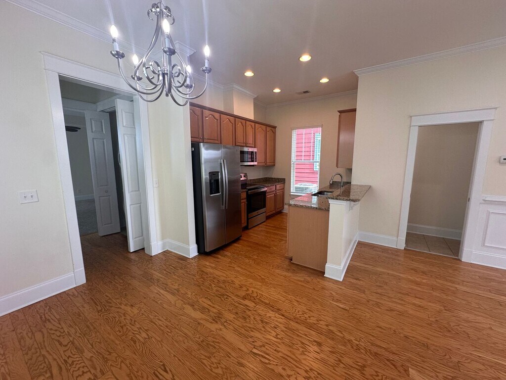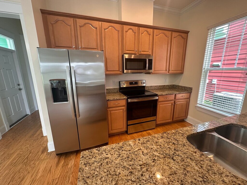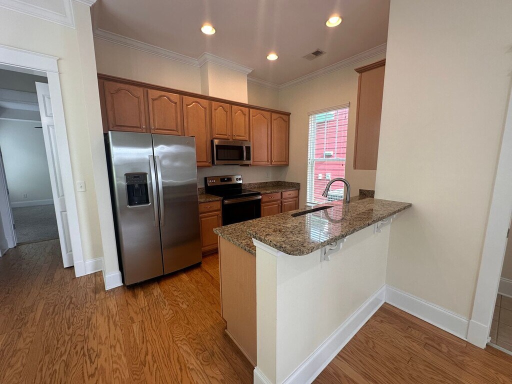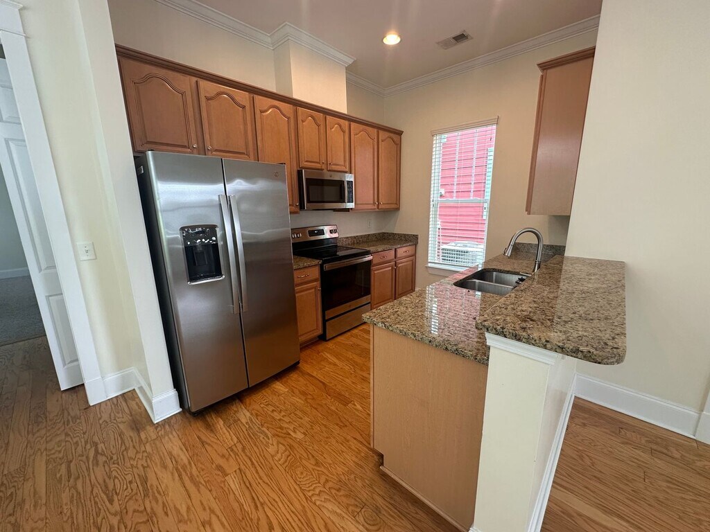 A perfect place to call home! This spacious home located in Sweetgrass Square at the Market Common has a family friendly floorpan with plenty of room to spread out! Walking in from the wide front porch entering the open plan is instantly welcoming with real hardwood flooring throughout the living room, dining area and kitchen. The kitchen has granite counters and stainless steel appliances with lots of cabinet space. The first floor master bedroom has NEW carpet and great closet space and the attached master bath has double sinks and a stand up shower. Upstairs is a large second living area that would also be perfect for a home office or play space. There are two additional bedrooms and two bathrooms on this level as well as a completely finished bonus room off of the back bedroom, great for storage or additional living space. The home also features a full size washer and dryer, two car garage and a small side yard. Walk to parks, shopping, dining and Horry Georgetown Tech. Less than two miles to the beach (free public parking available from the City of Myrtle Beach) Rent includes front and rear lawn care (tenant is responsible for side yard). Small dogs and cats conditional with additional deposit. New carpet, hard flooring and new washer/dryer pair!