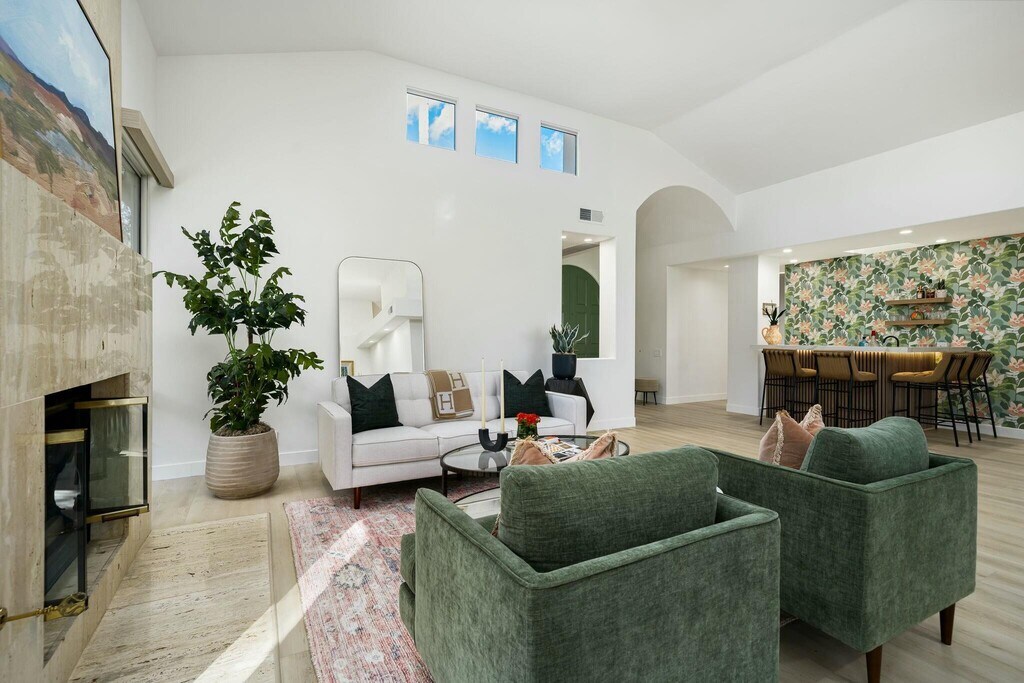 Leased Jan./Feb. 2026.~ Stunning Furnished Home with Spectacular South Mountain and Fairway Views! Enjoy breathtaking sunsets and serene mountain vistas from this gorgeous 3-bedroom,4-bath home. Welcoming you is a beautiful private courtyard with sitting area. A spacious open living concept; a gorgeous appointed interior,ideal for entertaining friends and family. Architectural Highlights; Entry foyer,high ceilings,elegant vinyl plank flooring and remote-controlled blinds throughout the home. The Living Room features a large TV and a wet bar complete with a wine refrigerator. Gourmet Kitchen is equipped with an oversized island,quartz countertops and top-of-the-line Bosch stainless steel appliances including double ovens. Enjoy meals in the cozy Breakfast Nook or at the Dining table for 8 or relax in the Den by the cozy Fireplace. Luxurious Master Suite with a King bed,private patio access,large shower,spa bath,and a spacious walk-in closet. Guest Rooms: 2 additional Guest Rooms feature Queen-size beds and updated en-suite Baths. Step out to the expansive outdoor Patio featuring dining for 6,perfect for enjoying the picturesque Views of the 18th fairway and surrounding Mountains. Just steps away from the community pool. Don't miss out on this extraordinary opportunity to lease a home that combines elegance,convenience,and stunning natural beauty. Minutes to El Paseo for Shopping and Dining. For Month of March only $12,000.