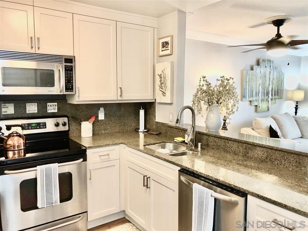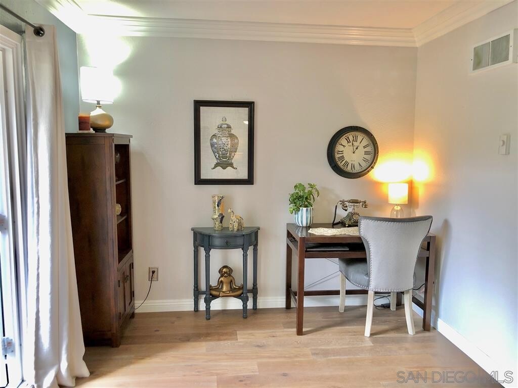 1st level one bedroom with an optional second bedroom. The unit has dual pane windows, ceiling fans, wood floors, stainless Steel kitchen appliances and granite counters. Community has a pool, spa and clubhouse. 3 Minute walk to UCSD shuttle/Bus Stop and Westfield Mall. Condo is unfurnished. Photos are staged. Sorry no pets allowed. Available May 1st. Showings begin April 30th