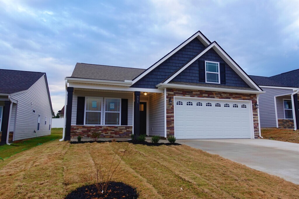 his 3br/2ba open floor plan is very open and bright. Large living room with smaller sitting/dining off the side. 10' Ceilings, crown molding with rope lighting, and corner gas fireplace with tv niche. The kitchen is equipped with granite counter tops, black whirlpool appliances, island, and plenty of cabinet space. Master Bedroom has tray ceiling with rope lighting and walk in closet. Enjoy the sunset on your 12x12 Covered Patio! Stone accents and covered front porch give this home great curb appeal. Brand new Subdivision with Convenient access to I-26 and I-85.