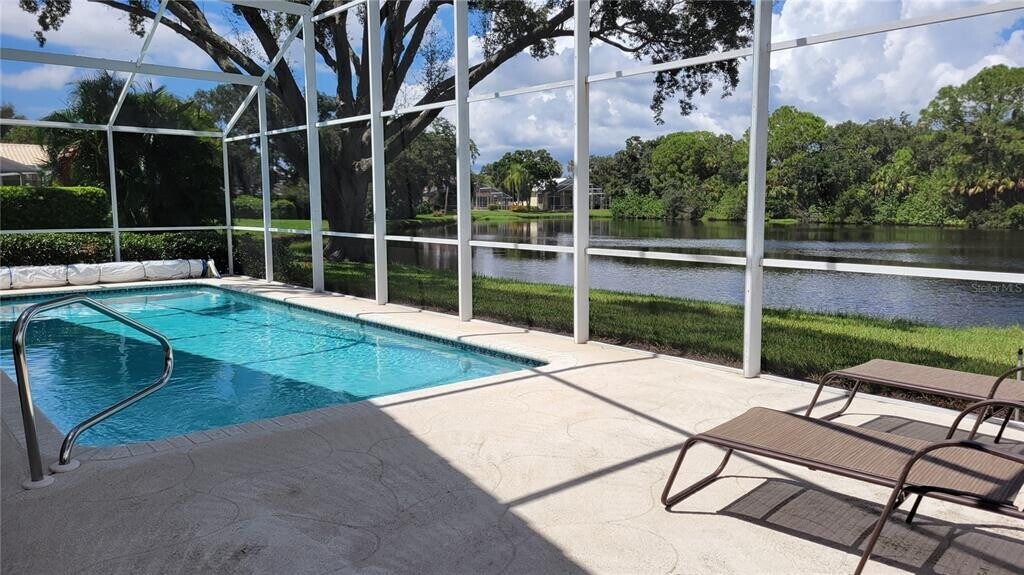 Seasonal/short term only Want to come to the Florida sunshine and be close to all the action but feel like you are in the middle of a nature preserve? This warm and welcoming home is for you. This home is spacious and natural light filled from high ceilings,clerestory windows. This house has interesting architectural detailing and is comfortably furnished for your pleasure. The kitchen is large with an eat in space,pass thru to dining room,custom tile backsplash,pantry and stainless steel appliances. The living/ dining/ main bedrooms all have wonderful views of the pool,lake and preserve. I actually saw a bald eagle in the tree behind this home waiting for lunch in the lake beyond! The pool is large,heated and has a covered and screened entertaining area. Convenience is key here-this home is close to shopping and dining,not far from I-75 or the airport,downtown Sarasota and the beach. This home is now rented thru March 2026. CALL TODAY to sign up for your time in paradise! High season (December thru April) are $7000/month + 13% tax and off season (rest to the year) is $2995/month + tax. This community is governed by a homeowners association. Approval may include an application,background screening,fees,and an approval process. Contact the agent for details. MLS# A4622781