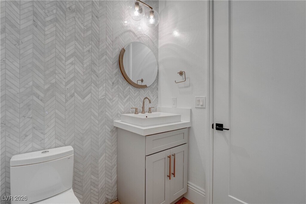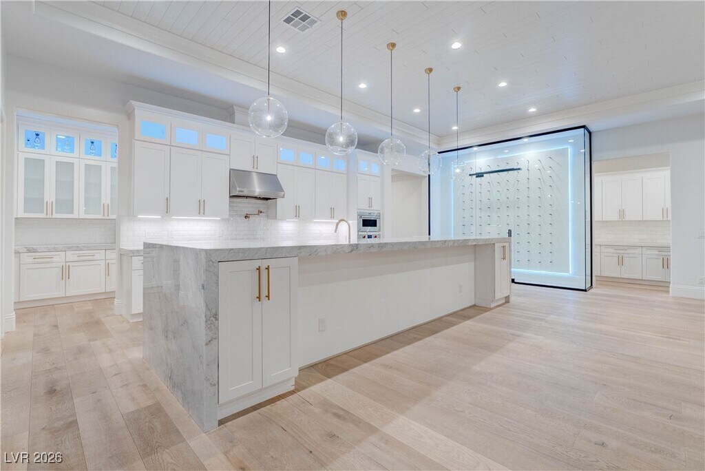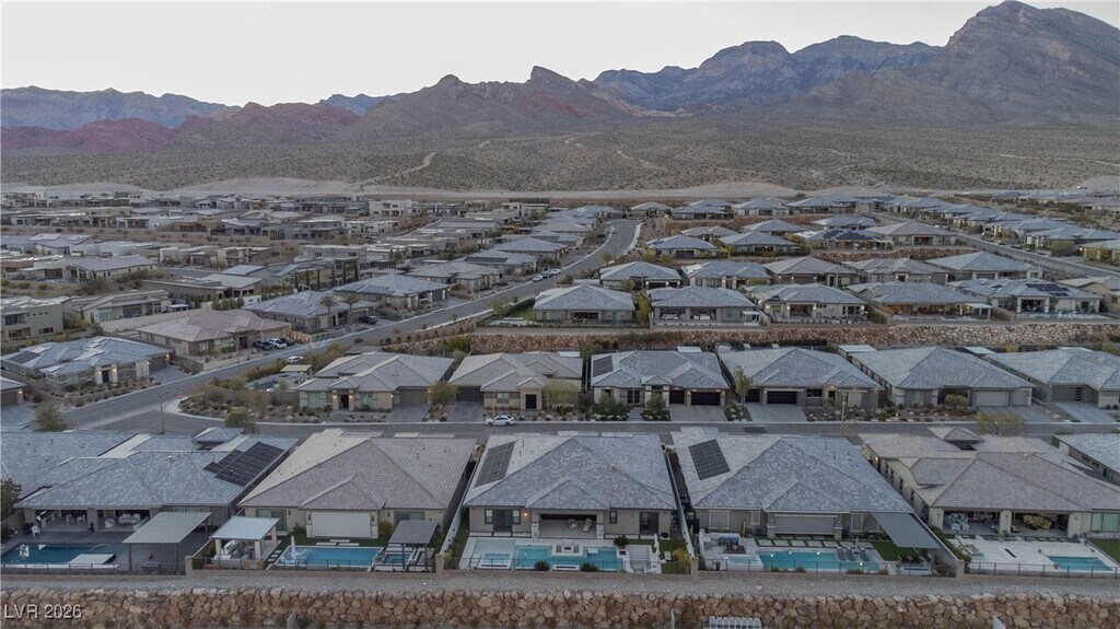 Exceptional single story luxury home in Summerlin West situated on an elevated lot with sweeping Las Vegas Strip, valley, and mountain views. This 4 bedroom, 4 bathroom residence features a modern open concept floor plan with expansive sliding glass doors creating seamless indoor outdoor living. The chef’s kitchen offers a large waterfall island, custom cabinetry, Sub Zero and Wolf appliances, walk in pantry, and designer lighting. Dual primary suites provide flexibility for multigenerational living or guests, each with spa inspired bathrooms. The resort style backyard is an entertainer’s dream with a custom pool and spa, sun shelves, fire features, built in BBQ, covered patio, and unobstructed views perfect for sunsets and city lights. Additional highlights include wide plank flooring, stone accent walls, modern fireplace, wine display, and contemporary exterior design. Located near parks, trails, shopping, dining, and top rated Summerlin schools. A rare Summerlin West offering.