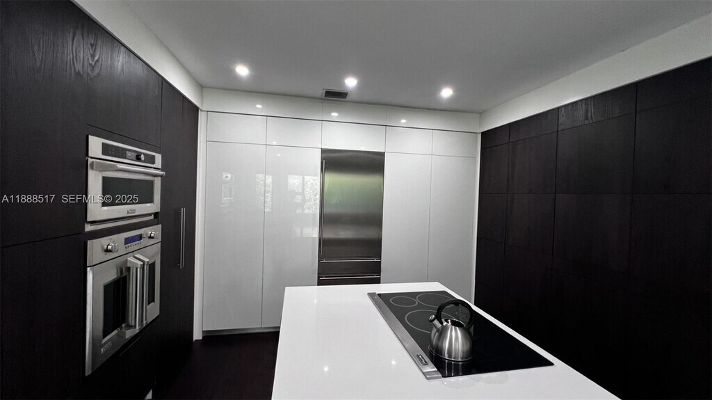 Spectacular 5BR/4BTH in Prestigious Gated Cutler Cay Community This home offers a spacious layout design, high ceilings, hardwood floors throughout, sophisticated chandeliers, Gourmet kitchen with stainless steel appliances, wine cooler, convenient ground-floor bedroom and bath ideal for guests, or to be used as an office. Large balcony accessible from spacious master suite with walk-in closet & seating area. Luxurious master bath includes tub with Roman columns, separate shower, toilet, and bidet. Enjoy a lifestyle resort-style including a fitness center, tennis, pickle ball basketball courts, heated pool, sauna, steam room & children’s playground. Included in rent: Alarm system, cable, and high-speed internet and landscaping. Gated community of Cutler Cay, with 24/7 security patrol.