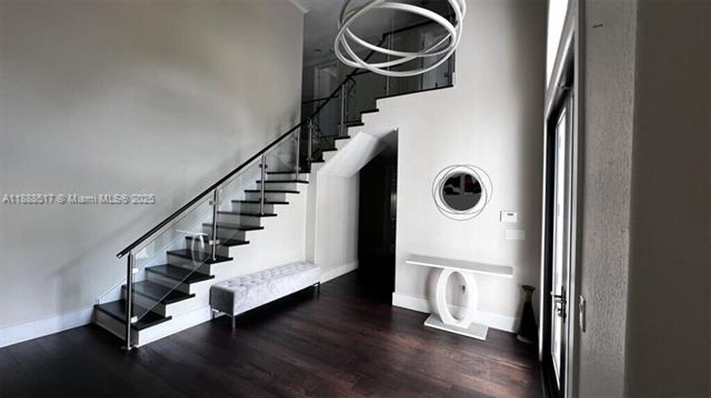 Courtesy OF Orion International Realty This spectacular 5-bedroom, 4-bathroom home in the prestigious gated community of Cutler Cay features a spacious layout with high ceilings, hardwood floors, elegant chandeliers, a gourmet kitchen with stainless steel appliances and wine cooler, and a convenient ground-floor bedroom and bath perfect for guests or an office; the master suite offers a seating area, walk-in closet, balcony, and a luxurious bath with Roman column tub, separate shower, toilet, and bidet, while community amenities include a fitness center, tennis, pickleball, basketball courts, heated pool, sauna, steam room, and playground, with rent covering alarm system, cable, high-speed internet, landscaping, and 24/7 security.