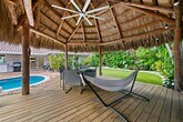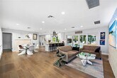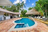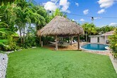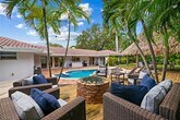 SEASONAL RENTAL — Everything to Enjoy the Winter in East Boca Raton. Tastefully furnished 3BR/3.5BA plus oversized den. Resort-style backyard with saltwater pool (heated & chilled), artificial turf, lush landscaping, Tiki Hut, and brick fire pit. Light-filled living/dining areas feature large windows and impact-glass sliders opening to the outdoor oasis. Recently renovated gourmet kitchen with granite countertops, oversized island, large pantry, and premium appliances. Bedroom 3 includes a pullout sofa. 1 Garage spot and outdoor cover with Tesla charging. Fourth small bedroom is locked for owner use. Minimum 6-month lease. No pets (owner allergic). All utilities included plus professional cleaning twice monthly.