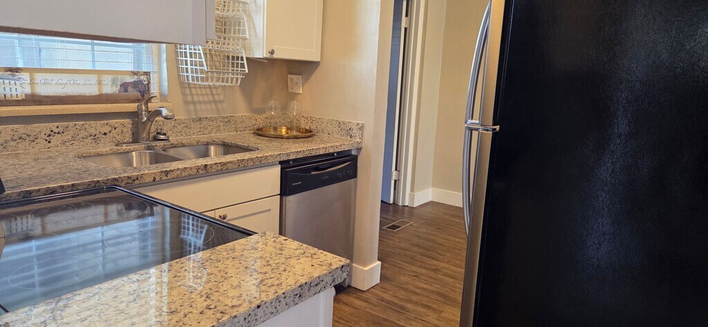 Looking for a stylish, move-in-ready place to call home? This beautifully 2-bedroom apartment has modern finishes, unbeatable convenience, and pet-friendly living! Spacious living area with modern finishes and natural light Sleek kitchen with granite countertops and plenty of cabinet space Dining nook perfect for hosting or working from home 1 reserved covered parking space Stay connected: Google Fiber & Xfinity available. In-unit convenience: Washer/dryer hookups. Assigned covered parking – no more winter scraping!