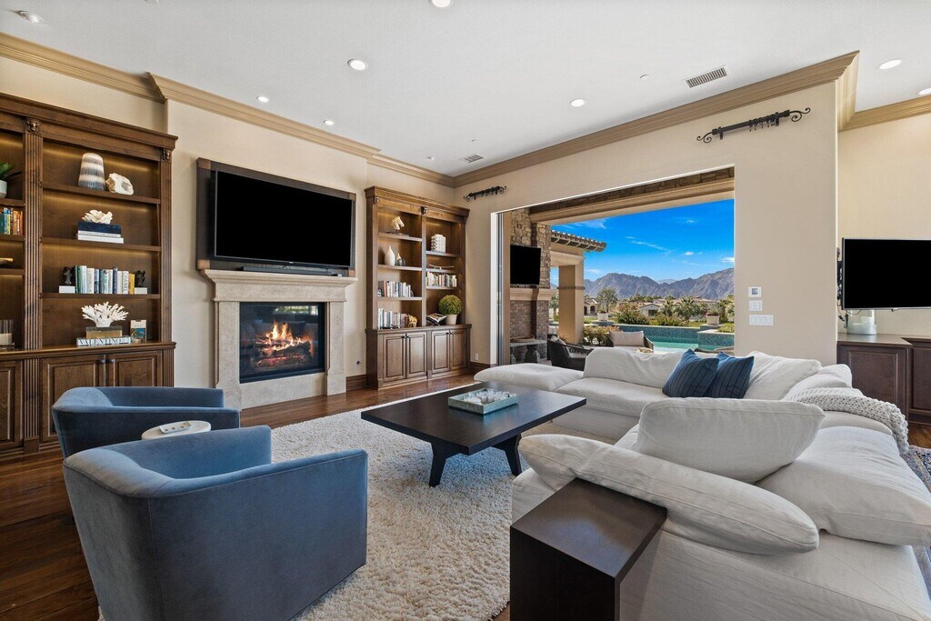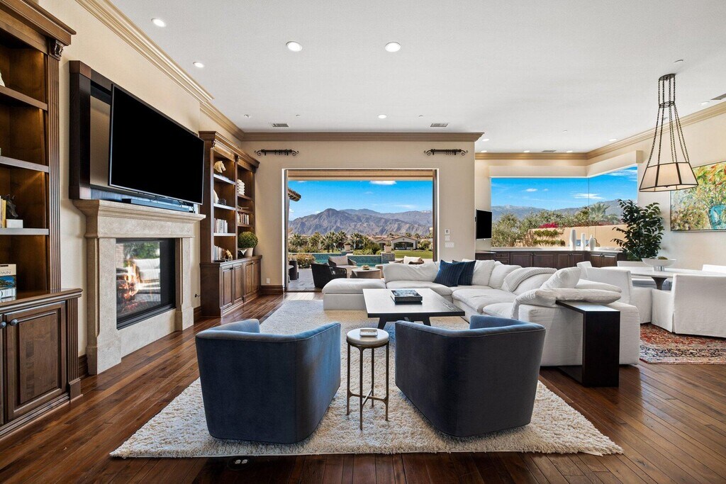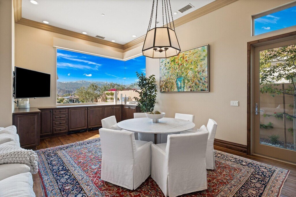Please call for availability,flexible lease terms available. Seasonal rates apply. Escape to the desert and enjoy relaxed luxury living in this beautifully furnished Tuscan-style home,ideally set within the guard-gated Toscana Country Club. Perched on an elevated lot,the home offers stunning south-facing mountain and golf course views from the main living areas,bedrooms,and outdoor patio,creating the perfect backdrop for your stay. Designed for comfort and easy living,the home features four en-suite bedrooms,including a private detached casita,ideal for hosting family and guests. The spacious great room,formal dining area,and fully equipped chef's kitchen with Wolf appliances and an oversized island make it easy to entertain or simply unwind at home. The primary suite is a peaceful retreat with a sitting area,beautiful views,and direct access to the pool and patio. The spa-like bathroom includes dual vanities,a soaking tub,walk-in shower,and generous closet space. Seamless indoor-outdoor living is at the heart of the home,with large sliding glass doors opening to a resort-style patio. Spend your days enjoying the pool and spa,dining outdoors,or relaxing in the lounge area with unobstructed fairway views. A private interior courtyard offers an additional quiet space with a fireplace,perfect for morning coffee or evening relaxation. Located in one of the desert's premier communities,this home provides a private and serene setting while still being close to shopping,dining,and entertainment. Please note: Toscana Country Club amenities are not included with the lease. MLS # 219146001