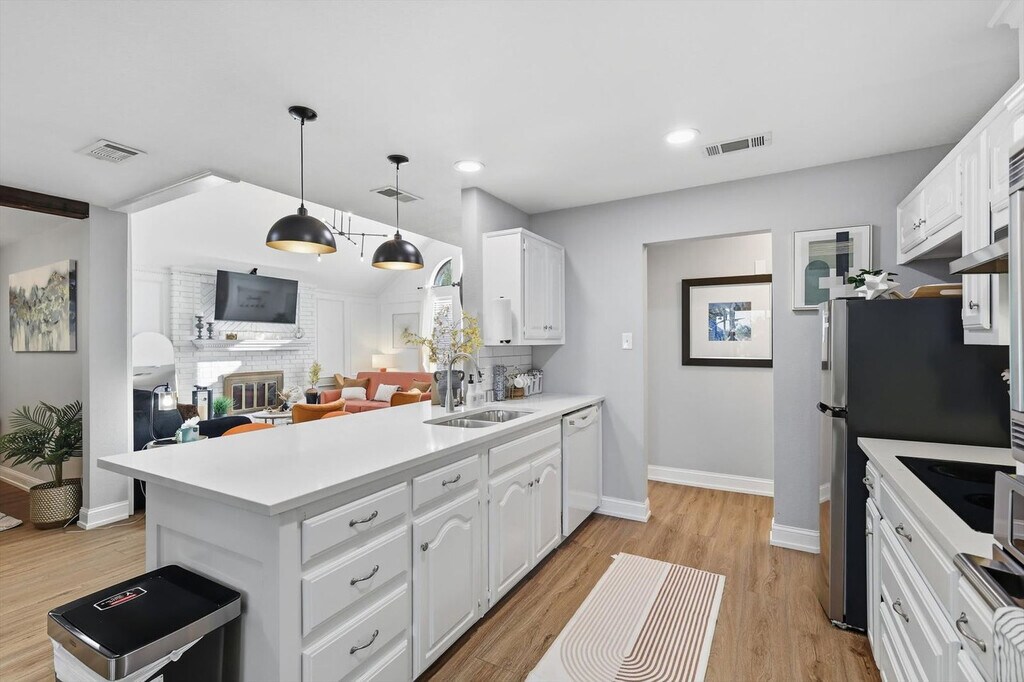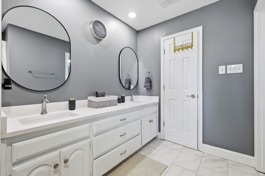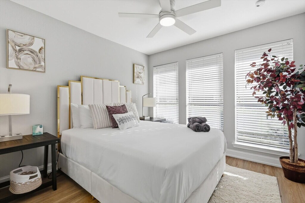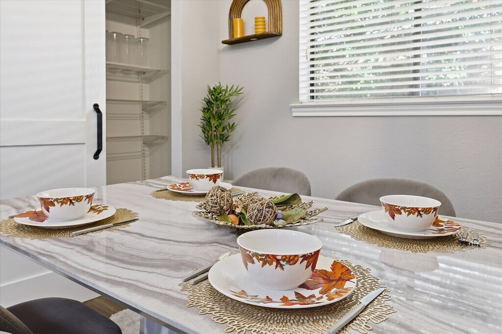 Furnished to provide you with the perfect balance of modern elegance and a cozy “home away from home” atmosphere, this lovely bungalow features 3-bedrooms and 2 bathrooms for you to settle into! Perfect for groups of up to 10, you’ll find beautiful, vaulted ceilings, a spacious covered outdoor furnished patio, and furnishings that will ensure you feel at home. Our home caters for both short-term and medium-term stays, making it an excellent choice for corporate housing needs. Whether you find yourself temporarily displaced from your home or require accommodation for your team during an extended project in our area, we provide a welcoming and comfortable "home away from home" experience. The kitchen may be the heart of the home, but you’re the heart of the kitchen! With stainless steel appliances, an oversized center kitchen island, and cooking essentials, this fully equipped kitchen is fit for a chef! This kitchen is just waiting for you to cook up your favorite meals! Featuring sophisticated vaulted ceilings and plush furniture, this living room offers you an upscale space to spend time with friends and watch TV. With two couches and multiple chairs, there’s plenty of sitting space to accommodate large groups. Whether you’re looking to enjoy a picnic in the grass, swing on the hanging chair, or enjoy a bit of Texas’ warm weather, there’s something for everyone in this backyard! This spacious patio is furnished and covered, so you can have the best of the indoor/outdoor lifestyle. Don’t forget to toss some burgers and steaks on the BBQ grill for a tasty, alfresco meal! Pets are welcome with a non-refundable pet fee of $150 per pet (maximum of 2 pets per stay). Frisco is one of the most exciting destinations in North Texas, with a blend of big-city amenities and small-town charm! With beautiful parks, exciting museums, and vibrant shopping, Frisco offers something for everyone, making it the perfect place to play, shop, and explore! Here are a few highlights to check out while you’re here: Toyota Stadium, a vibrant hub for soccer fans as the home to FC Dallas (MLS), the Frisco Bowl, and the National Soccer Hall of Fame [10 min drive], The Star (Dallas Cowboys Headquarters), which offers tours, entertainment, and public eateries in the heart of Cowboys Country [12 min drive], Stonebriar Centre, a massive shopping mall with over 220 shops, a food court with a carousel, and an indoor theme park [10 min drive] and National Videogame Museum, an interactive museum that celebrates gaming culture with playable vintage arcade machines, rare memorabilia, and exhibits about the evolution of video games [10 min drive]. For those interested in exploring Dallas, here are some noteworthy attractions: The Sixth Floor Museum at Dealey Plaza, a historic site that chronicles the life, death and legacy of President John F. Kennedy [30 min drive], Dallas Arboretum Botanical Gardens, a nationally acclaimed 66 acre display garden features breathtaking floral displays [35 min drive], Perot Museum of Nature and Science, featuring large-scale state-of-the-art displays that inspire minds through nature and science [30 min drive] and The Dallas World Aquarium, home to exotic birds, endangered animals, and a wide assortment of sea animals! [30 min drive]. If you arrive by car, you will be happy to know that we offer free parking space. If driving is something you would like to avoid during your stay, Uber and Lyft are only minutes away 24/7. Parties or large unauthorized gatherings of any sort are not allowed. Smoking of any type is not allowed and violations are subject to a $450 fine plus the cost to clean, deodorize, and repair damages. Only registered guests will be allowed. Check-in time is 4pm and check-out time is 10am. Pets should be discussed in advance; we only allow house-trained pets and ask to make sure they keep off beds and furniture. Pet cleaning fees apply. Registration Number: 380 [SI]
