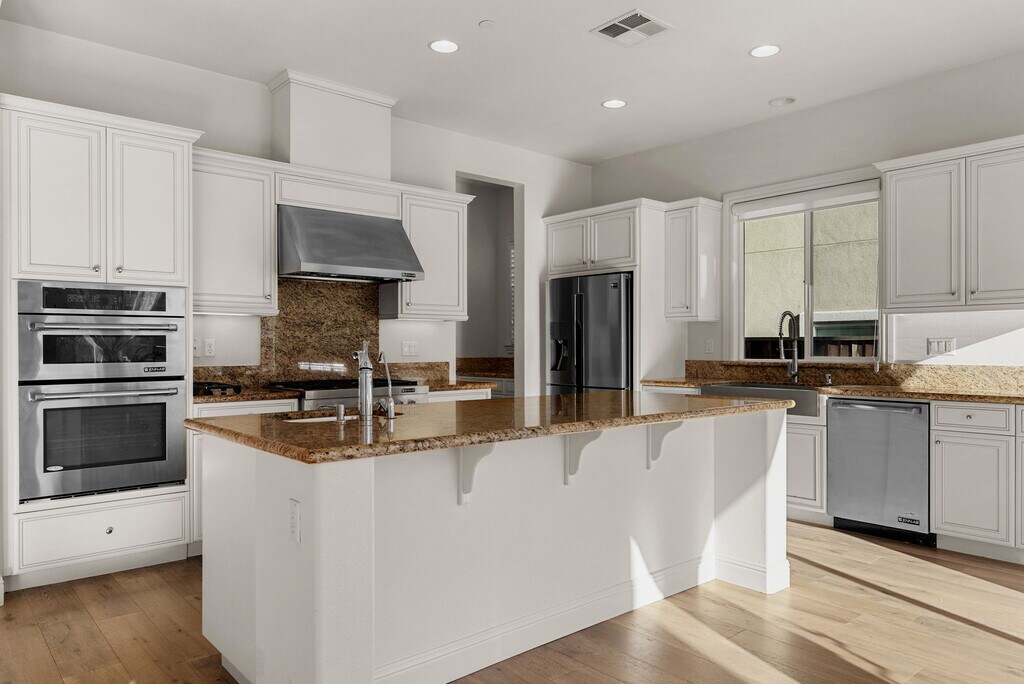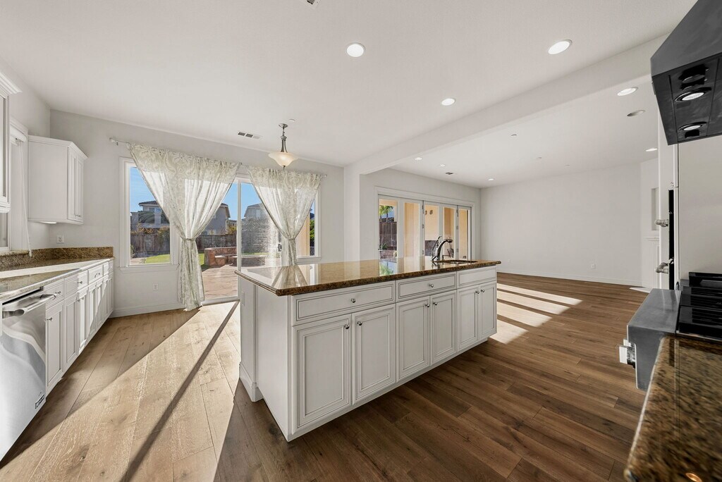 Welcome to 7585 Mindy Mae Ln in the desirable Schaefer Ranch community. This well-appointed home features rich walnut hardwood floors, formal living and dining areas, and an open-concept family room that flows into a chef's kitchen with high-end appliances, a large island, ceiling-height cabinetry, and a walk-in pantry. A private downstairs bedroom near a half bath offers flexible use for guests or a home office. Upstairs includes a spacious loft, laundry room, three additional bedrooms, and a generous primary suite with a spa-style bath and walk-in closet. Enjoy year-round outdoor living with a built-in fireplace, firepit seating, and low-maintenance landscaping. Additional features include water filtration, smart home technology, and a Tesla EV charger. Conveniently located near parks, top-rated schools, shopping, dining, BART, and major freeways.