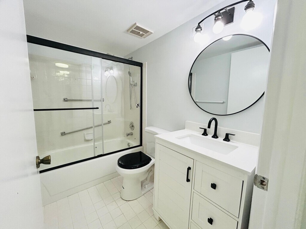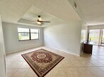 2 bedroom 2 bath 1st floor corner condo. Parking right up front. Large eat in kitchen with pass through to dining room. 3rd room with closet can be used as office/den. Master bedroom features a walk in closet and ensuite bathroom with walk in shower. enclosed back porch with water view and laundry closet. Community offers large clubhouse, lobby, theater with entertainment, billiards, bocce and shuffleboard, library, tennis, 2 heated swimming pools, hot tub, whirlpool and sauna. Bus service from the clubhouse to shopping, medical and excursions. Lake Worth Beach 10 miles away. Close to turnpike, shopping and medical.