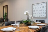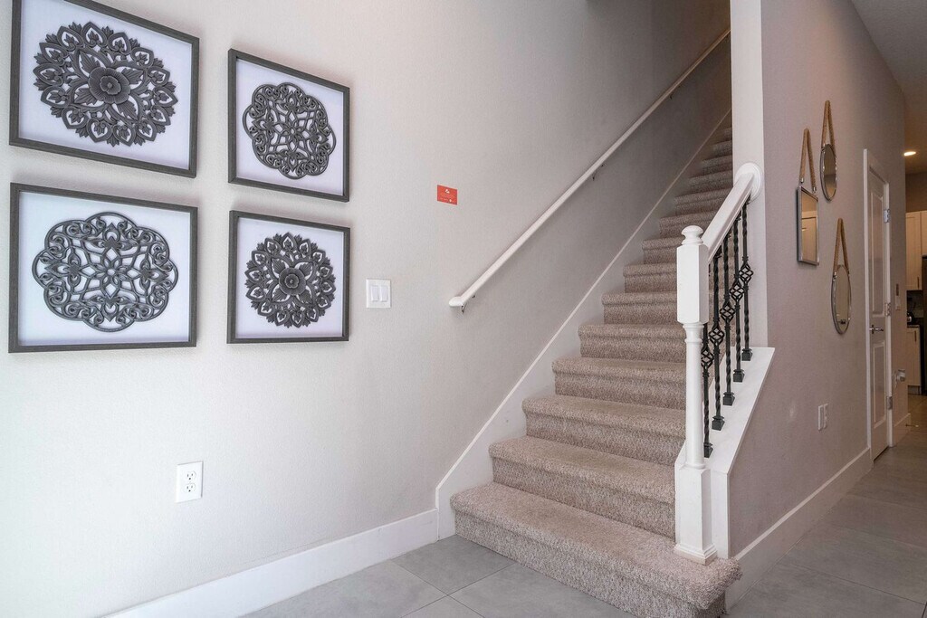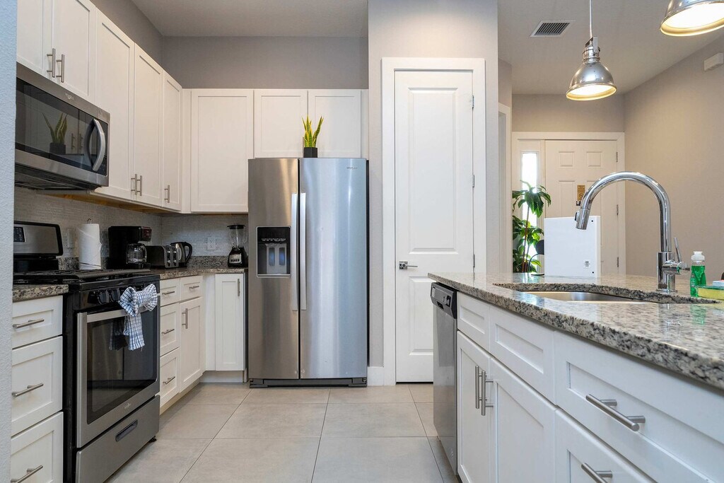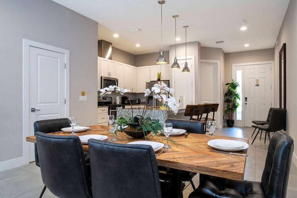 Experience the ultimate Orlando getaway in this beautifully designed 4-bedroom, 3.5-bathroom townhome at Summerville Resort, just 15 minutes from Disney. Accommodating up to 10 guests, this home offers a spacious living area, a fully equipped kitchen, and a relaxing patio. Highlights include Mickey and Toy Story-themed bedrooms that kids will love and a summer kitchen on the patio, perfect for gathering with family and friends after a fun day at the parks. Welcome to your ideal Orlando retreat! Nestled in the inviting Summerville Resort, this beautifully decorated 4-bedroom, 3.5-bathroom townhome offers a perfect mix of comfort, style, and convenience, making it an excellent choice for families or groups. The spacious living room connects seamlessly to the dining area and a fully equipped kitchen, creating a welcoming space for family meals or relaxation after a day of exploring. Step outside to the patio, complete with a summer kitchen, where you can enjoy a barbecue with your loved ones in a peaceful setting. The first floor features a cozy king bedroom suite, offering both comfort and privacy. Upstairs, the second floor includes three additional bedrooms: a serene king master suite, a fun Mickey-themed room with two double beds and a private bathroom, and a playful Toy Story room with a bunk bed (two single beds) that shares the Mickey room's bathroom. For added convenience, the home includes a laundry room with a washer and dryer, complimentary Wi-Fi, and free parking. A welcome kit with essential bathroom and kitchen supplies ensures a smooth start to your stay. With its thoughtful layout, modern amenities, and playful themed touches, this home is perfect for creating lasting memories on your Orlando vacation. There is a fee for using the barbecue grill. Summerville Resort is the perfect choice for your Orlando vacation, offering excellent amenities and an unbeatable location. Situated just minutes from Walt Disney World and other top theme parks, it ensures you’re always close to the excitement. The resort features a beautiful resort-style pool for relaxing under the Florida sun, a soothing hot tub, a well-equipped fitness center for staying active, a children’s play area for endless fun and a charge station for electric cars. The location adds to its appeal, with Walmart just 1 minute away and a variety of restaurants, shops, and markets nearby. Whether you’re heading to the parks, shopping on a variety of stores and markets, or enjoying a meal at one of the many local or international dining spots, everything you need is just moments away. Summerville Resort combines modern amenities with unmatched convenience, making it the perfect place to create lasting memories with family and friends. Guests are responsible for replenishing amenities during their visit. Quiet hours are between 22:00 and 8:00. [SI]