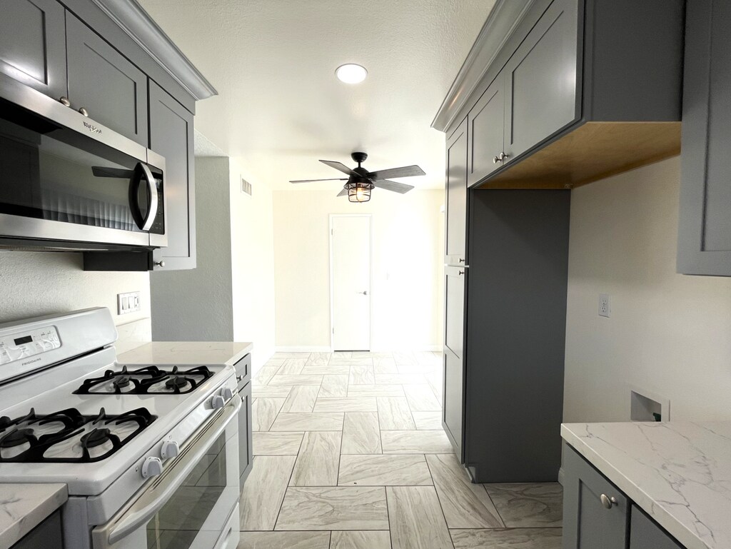 This inviting 3-bedroom, 2-bath home offers a spacious front and back yard filled with greenery, and a backyard that’s perfect for hosting with both grassy space and a large cement patio. Inside, you’ll find a beautifully updated kitchen with white countertops, grey cabinets, and an oven, stove, and microwave already in place. Every room has a ceiling fan to keep things comfortable, and the 2-car garage adds plenty of convenience. Located in a quiet neighborhood, the home offers great indoor comfort and wonderful outdoor space. All applicants must complete a PetScreening profile, even if the household does not have a pet/animal. Please see the link below: DRE #01197438