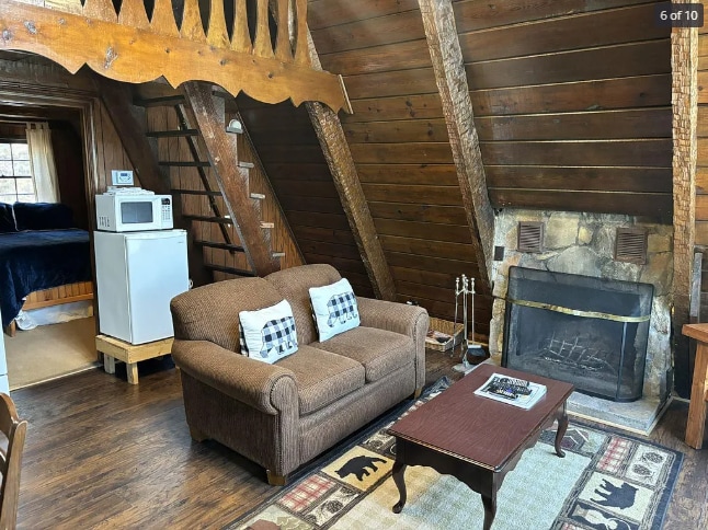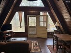 This is a furnished, 1-bedroom, 1-bathroom, with a loft, home in the Chalet Village Community in Dillard. With breathtaking mountain views when you come home, sit back and relax in the rocking chairs on the front deck. This property includes unique features for your comfort, like a rock, wood-burning fireplace. A bedroom, bathroom, and kitchenette are on the main level, and a loft bedroom is upstairs. There are just a few steps to see a beautiful wooded view from the front deck. You will enjoy the privacy and woods that surround this home. From this property, it is just a short walk to the Chalet Village Community trout pond and private pool for the residents. This cabin is located in an HOA community that maintains regulations for your safety and enjoyment of the beautiful homes and views. Just minutes to downtown Clayton, Dillard, and twenty minutes to Highlands and Franklin, NC. The town of Dillard, nestled in the North Georgia mountains, offers a peaceful retreat for those seeking a slower pace of life. Surrounded by lush forests and stunning views, this charming town fosters a close-knit community. Residents enjoy easy access to outdoor activities like hiking, fishing, and scenic drives. With its beautiful landscapes and mild climate, Dillard is perfect for nature lovers and anyone wanting a relaxed mountain lifestyle.