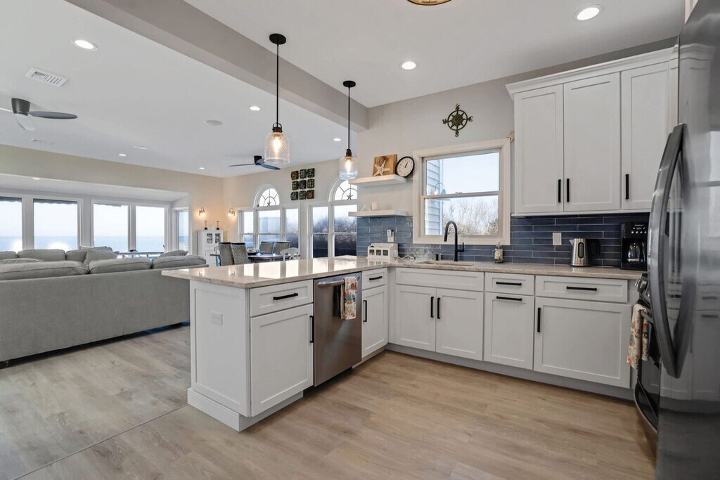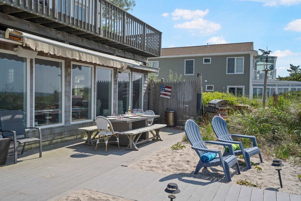 The advertised rate of $6,503/month is the lowest available price, based on a 1 month(s) stay with a move-in date of April 1, 2026. Rates vary depending on the duration of stay, season, and other parameters. For exact pricing and additional pricing components, please visit our website and enter your desired move-in and move-out dates. The rate is applicable when billed upfront; it can be higher if billed in multiple payments. Feel at home in Queen Vic, a 5-bedroom, 3.5-bath Soundfront home with direct views of the Long Island Sound. The home sleeps up to 10 and features an open main living level with a large kitchen, dining area, and lounge facing the water. The main level features an open layout with a large kitchen, dining area, and living room oriented toward the Sound. Stained glass windows throughout the home add character and natural light. The property includes two decks, a ground-level outdoor seating area, and a hot and cold outdoor shower. Kayaks and paddleboards are included for guest use. Lush greenery surrounds the home, creating a private and enclosed feel. Pets are welcome with a fee of $200 per pet per stay. An additional $100 may apply for dogs that shed excessively. Located just minutes from Sound Ave, the home is close to North Fork vineyards, farm stands, restaurants, and shopping. Popular day-trip destinations including local beaches, parks, and family attractions are within easy driving distance. Nearby attractions include The Barn of Wading River (1.3 miles), Bakewicz Farms (2.9 miles), The Shoppes at East Wind (3.2 miles), East Wind Day Spa (3.4 miles), Wildwood State Park (3.6 miles), and Lewin Farms (3.7 miles). Quiet hours are observed between 10 PM and 8 AM. The primary renter must be at least 25 years old. For stays over 21 days, any extra utility costs beyond the initial charged amount are the guest's responsibility. For reservations of 29 nights or more, a refundable deposit will be collected prior to arrival. Registration Number: 24-0044 [SI]