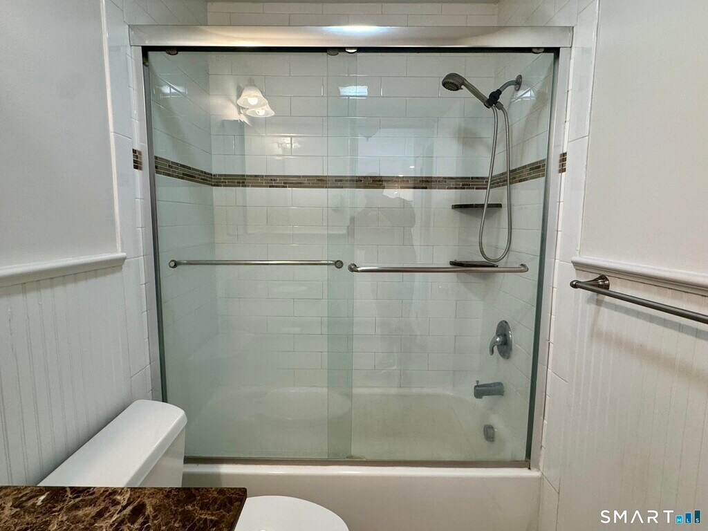 Call for Availability - Discover comfortable and stylish living in this beautifully updated one bedroom, one bathroom condo located in the highly desirable Glenbrook section of Stamford. This home features a modern kitchen with upscale stone countertops and stainless steel appliances, and a fantastic oversized island perfect for culinary enthusiasts. Enjoy a large, bright living room complete with a cozy fireplace and a TV wall mount, making it easy to set up your entertainment center. Step through the sliding doors to your private balcony, ideal for relaxing or entertaining. Convenience is key with an in-unit front loading washer and dryer, an updated bathroom, and your own private, secure storage space. Parking is a breeze with a garage spot plus an additional assigned parking space! Common hallways have just been repainted and floors/stairs have new carpeting. Everything inside the unit and out is crisp, clean and bright. And to sweeten it all even more?.... brand new slider and windows are being installed! Experience the perfect blend of comfort, style, and convenience in this exceptional condo. Schedule a viewing today and make this Glenbrook gem your new home! MLS# 24147450