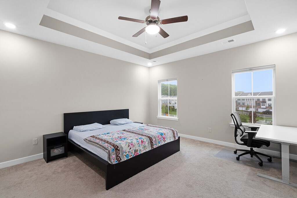 Newer construction, three year young Schubert unit townhouse. Ground floor has two car garage and recreation/flex area with sliding door that leads to outdoor seating area. Full bathroom on ground floor makes this floor suitable for additional bedroom space. Second open-concept living floor includes kitchen with large center island, seating for four, and stainless steel appliances. Third floor primary suite has large closet and en-suite bathroom with both stall shower and large soaking tub. Two additional bedrooms, full hall bath, and laundry room complete third floor. Come enjoy this almost-new townhome that has many of the conveniences of a single family along with the convenience of the townhome lifestyle. The Mountain Ridge estates has several amenities including outdoor fitness stations, playground, and private clubhouse with both fitness and recreation equipment. NTN required. Tenant responsible for first $100 of each repair.