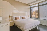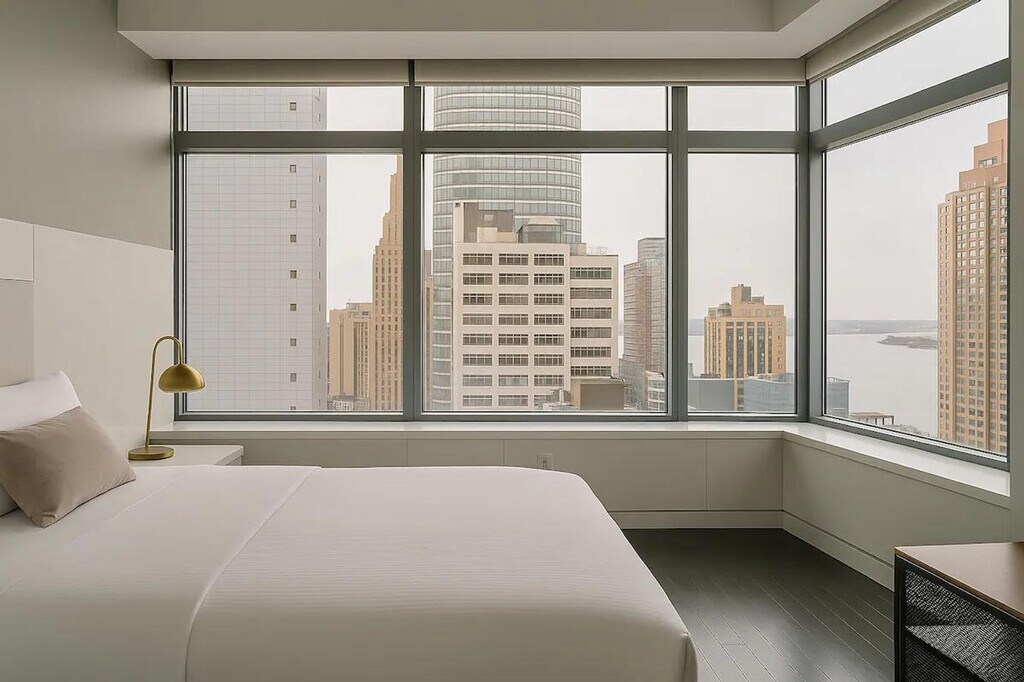 Feel at home in this stunning studio apartment near the Freedom Tower in prime Downtown NYC. Located on the 26th floor of the luxurious W residence, you can enjoy floor-to-ceiling views and take in the wondrous skyline. Fully equipped for extended stays, this studio home features a king-size bed, in-unit laundry, and a gourmet kitchen. The well-appointed open kitchen boasts elegant white lacquered cabinetry, sleek countertops, and discreet cove lighting. It's fully equipped with high-end appliances, including a Miele gas range, oven, microwave, and Sub-Zero refrigerator. You'll find everything you need for your culinary adventures, from pots and pans to chef's knives and wine glasses. The chic bathroom features dark tile floors, a glass-enclosed stall shower, a Duravit undermount sink, sleek chrome fixtures, and a comforting towel warmer. Seamless high-speed Wi-Fi is provided, and cleaning essentials, including dish soap, paper towels, a vacuum, and laundry detergent, are available. Access resort-style amenities including a 24/7 doorman, gym, and skyline terrace. This downtown haven places you within convenient proximity to the Financial District and iconic NYC landmarks, including One World Trade Center, the 9/11 Memorial & Museum, South Street Seaport, the Statue of Liberty ferry, Brookfield Place, and the illustrious Brooklyn Bridge. All photographs are for illustration purposes. While your apartment features the same high-quality furniture and finishes seen in the photos, decorative items such as plants and accent cushions are not included in the actual residence. These were staged for photography and sample decoration. Monthly rental rates are subject to market demand and may fluctuate for any extensions. To lock in your rate for the entire duration of your visit, it is highly recommended booking the entire required period at the time of your initial reservation. [SI]