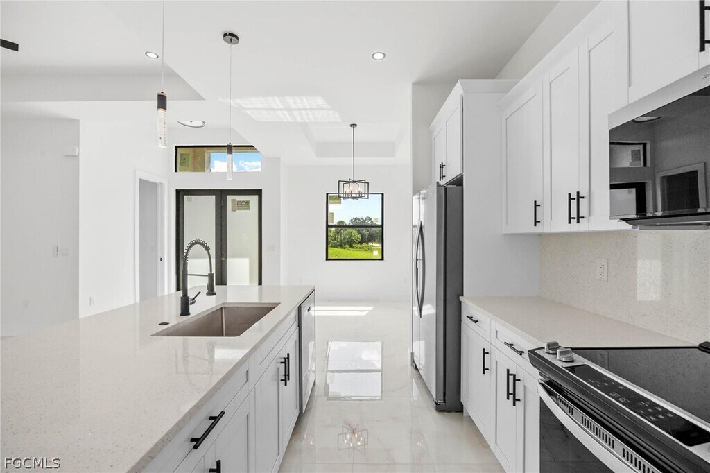 Be the very first family to live in this beautiful brand new home! This 3 bedroom 2 bath home has a den,2 car garage and a lanai under truss! The inside is finished with marble like tile,quartz counter tops,stainless steel appliances and more! The spa like bathrooms are gorgeous. Impact windows and doors make gives peace of mind. This home is located in SW Lehigh acres. You will be proud to call this your next home!