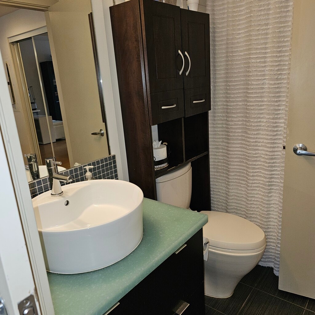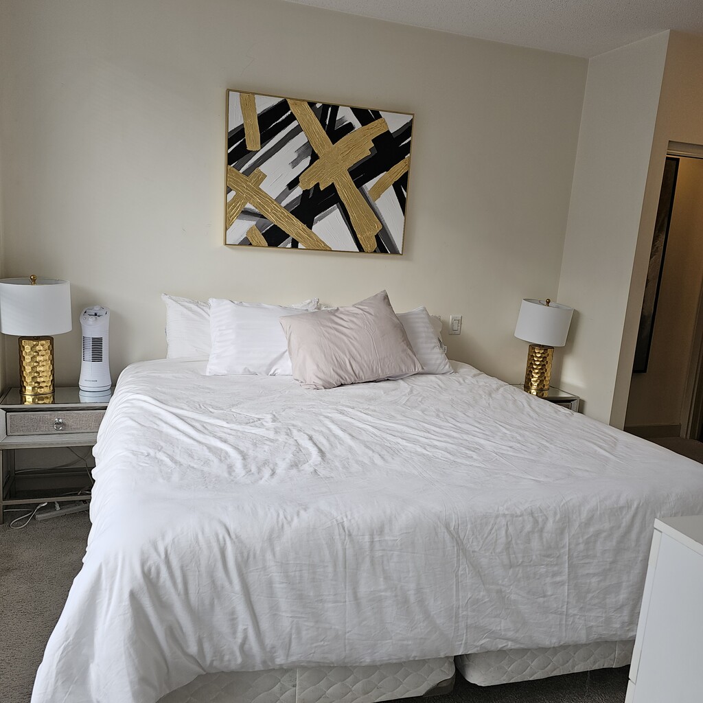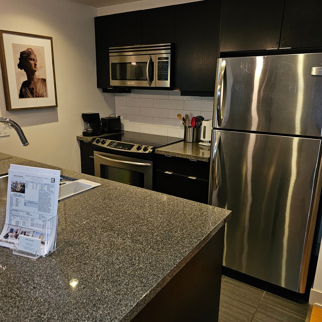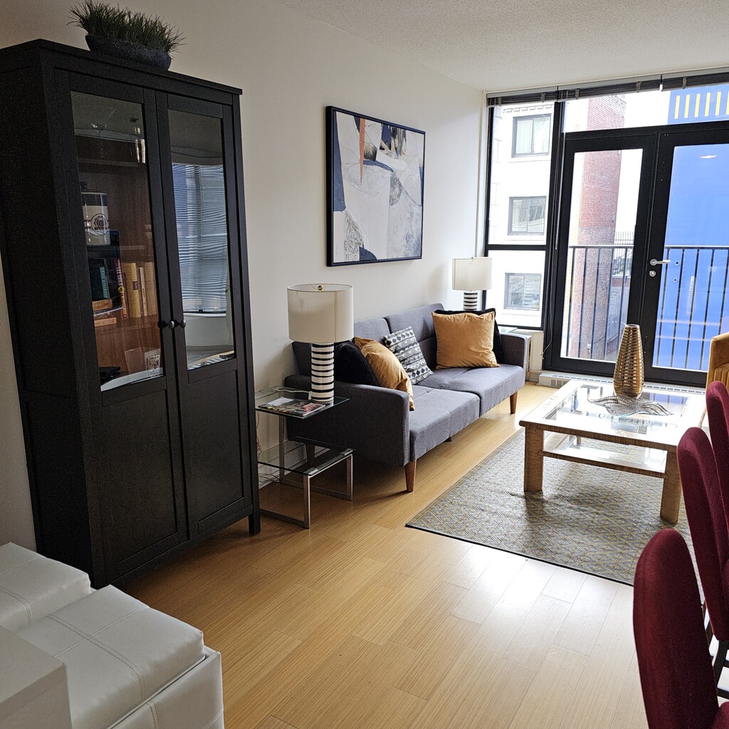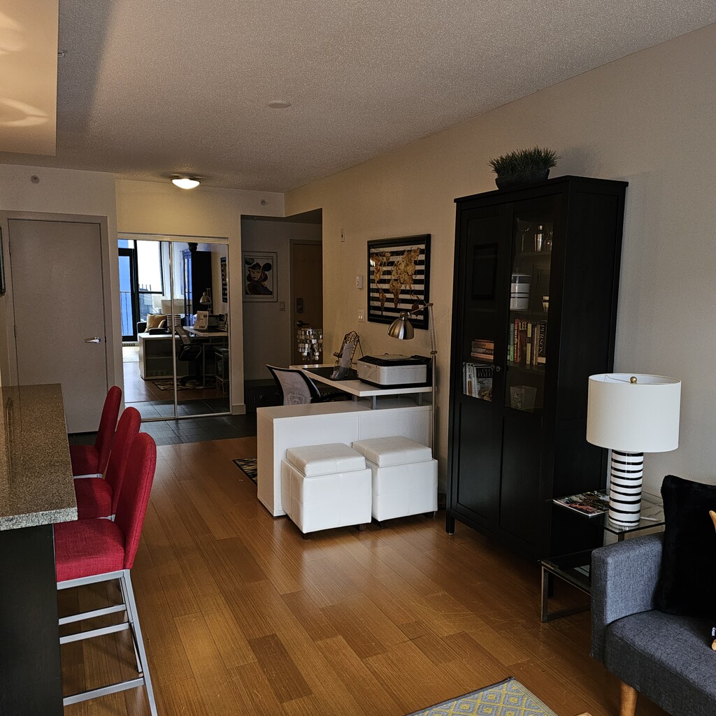 Fully Furnished. 682 sqft steel & concrete building. south-facing Bamboo flooring in the main living area Hot water/Water included Rooftop common area with BBQs & stunning views 1895.00 without parking 1995.00 with parking Fully Furnished 1BR at The Juliet - Downtown, Bright & Move-In Ready $1895 1 Bed • 1 Bath • Steel & concrete building Why you'll love it - South-facing & bright with wall-to-wall windows in both the living room and bedroom - Move right in, fully furnished (just bring your suitcase) - In-suite laundry for everyday convenience - Bamboo flooring in the main living area for a warm, modern feel Kitchen & living - Granite countertops + stainless steel appliances - Large peninsula with bar seating—great for meals or prep - Flexible dining/work area (currently set up with a desk) - Juliet balcony off the living room for fresh air Bedroom & bath - Barn-style door into the bedroom - Walk-through closet to a 4-piece bathroom Building perks: - Secure bike storage - Rooftop common area with BBQs and stunning city views On your doorstep - Ground-level cafés including Tim Hortons and Macchiato Coffee