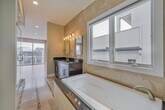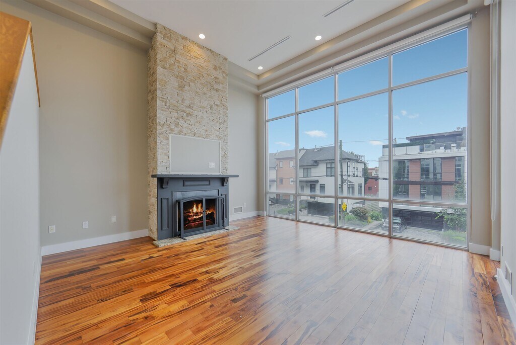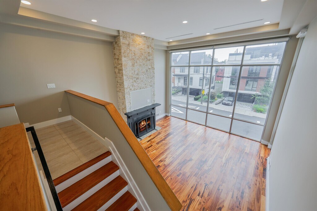 Designed for effortless entertaining, this home offers a comfortable, practical, and stylish environment with premium details throughout. The expansive open-concept first floor features a welcoming living room with a fireplace, a dedicated dining area, and an oversized modern kitchen equipped with state-of-the-art appliances and a convenient breakfast nook. Step directly from the kitchen onto a beautifully landscaped patio, perfect for outdoor gatherings. The second floor provides a spacious master bedroom with en-suite facilities, along with two additional bedrooms and a full bath. The versatile ground level includes a fourth bedroom that can easily serve as a gym or media room, a full bath, and a two-car garage. Ascend to the rooftop deck for a private oasis, ideal for relaxation, fun, and contemplation while enjoying breathtaking panoramic views of the NYC skyline and the river. This exceptional home boasts a prime location, close to GW School and just one block from both the NYC bus stop and the Edgewater Ferry shuttle.