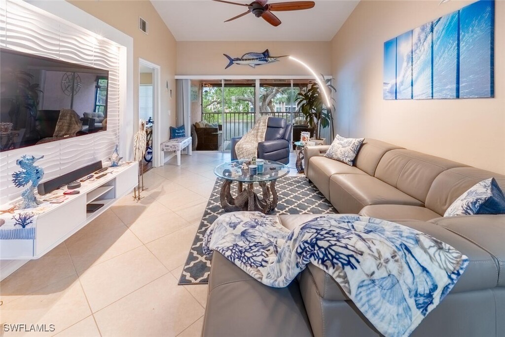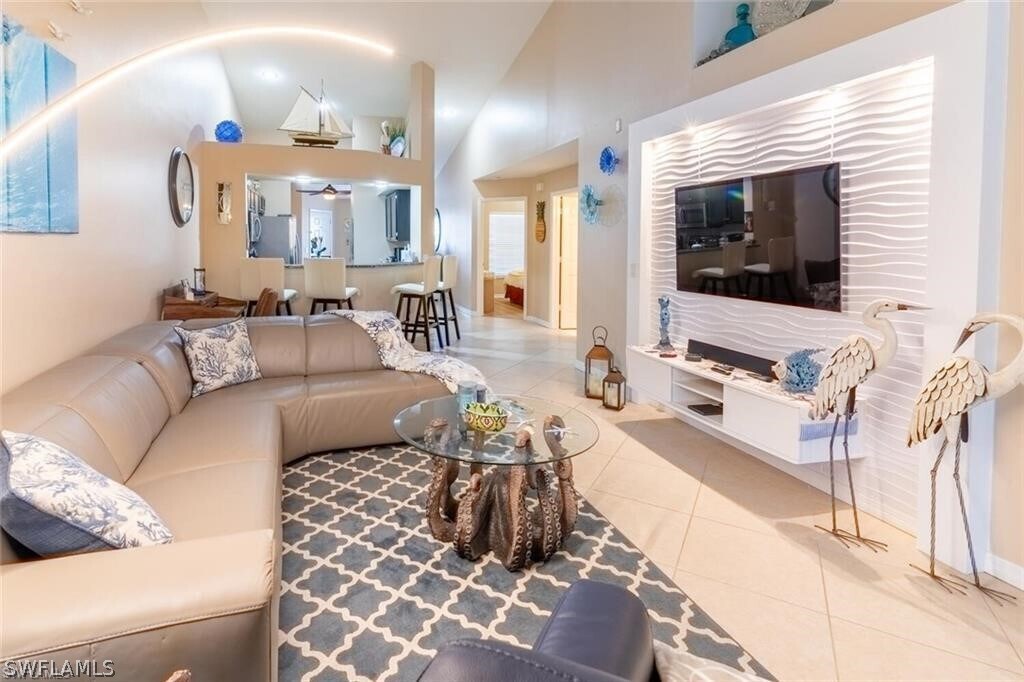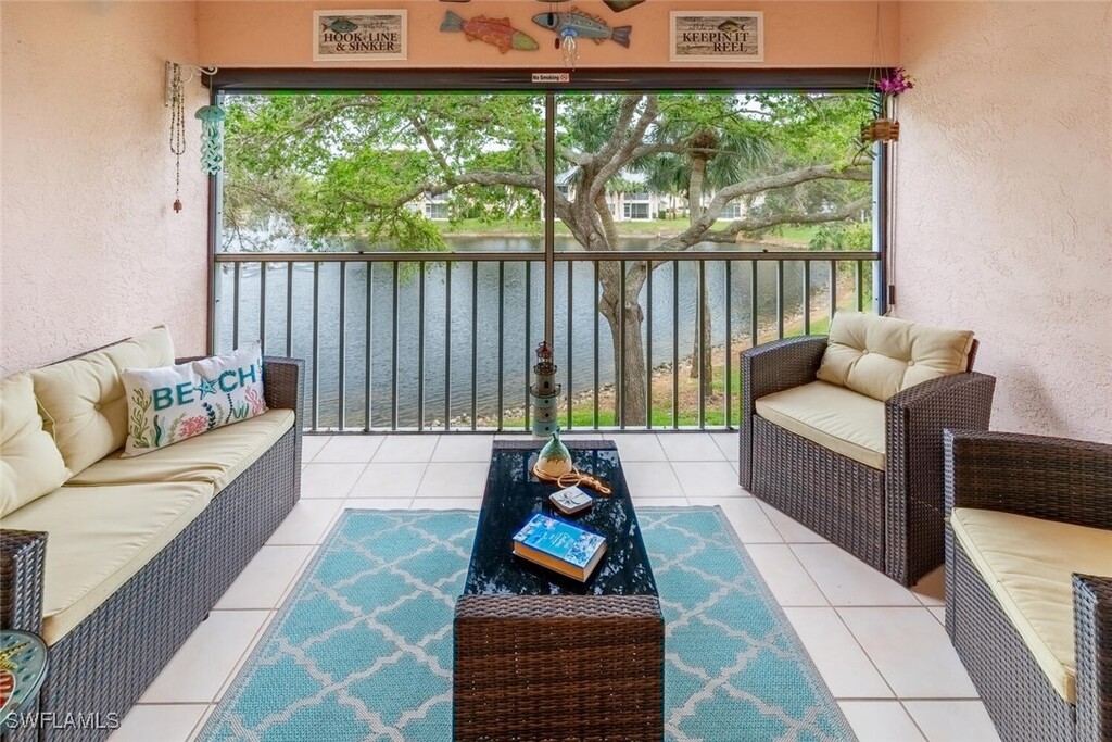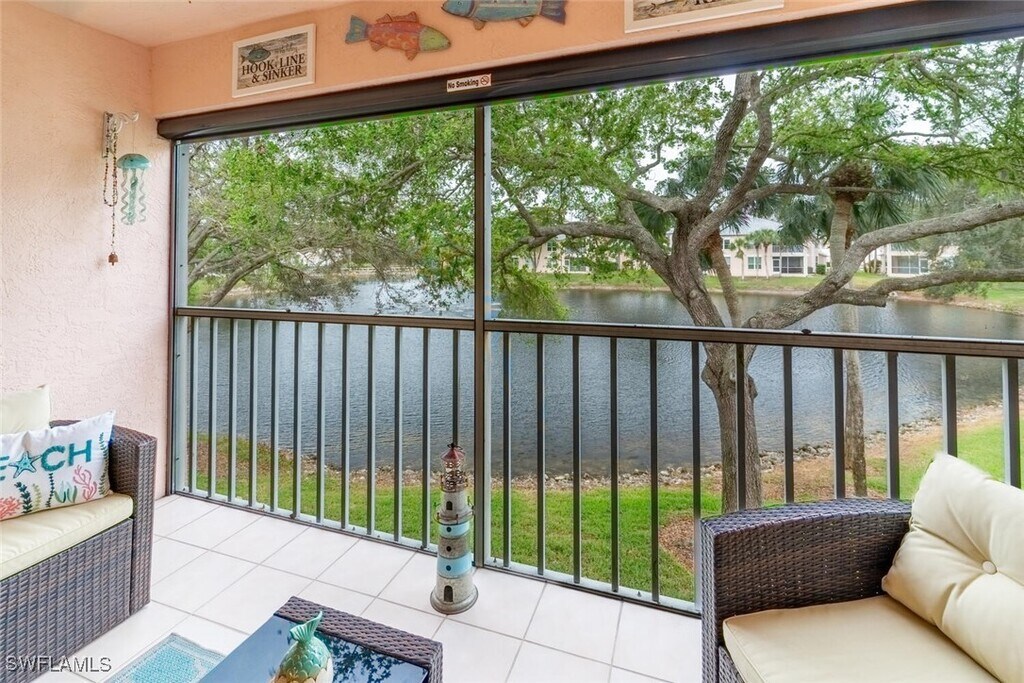 Centrally located West of 41,only minutes to Vanderbilt or Bonita Beaches,public golf courses,restaurants and local shopping! This 2nd floor condo is extremely cozy and tastefully furnished. Situated safely on a quiet back street off Gulf Harbor if you enjoy bike riding! Features include upgraded kitchen,furniture,family room with entertainment center which includes TV flat screens,Alexa and Amazon Fire Sticks,DIRECTV Stream with Premium Channel Line Up and High Speed WIFI Internet,tile and wood flooring throughout the condo and bedrooms. Lake views on the south facing lanai,2 convenient assigned parking spaces,storage,2 community pools,tennis court and a clubhouse.
