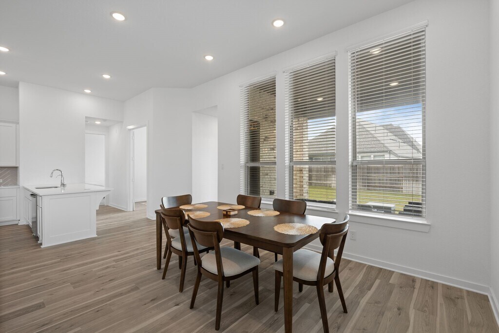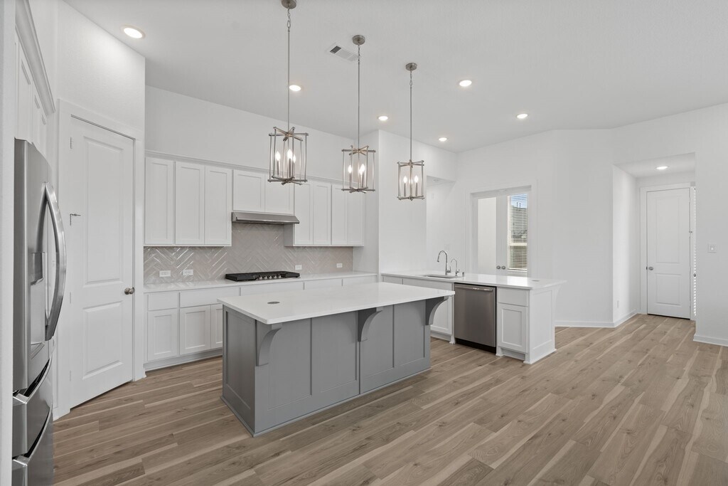 Beautiful one-story Highland Homes residence in the highly desirable Elyson community. This 4-bedroom,3-bath home offers 2,682 sq ft of bright,open living space with tall ceilings and abundant natural light. The large,inviting open kitchen features modern styling and expansive quartz countertops,oversized island,gas cooktop,double ovens,and walk-in pantry—ideal for entertaining. Kitchen flows seamlessly into the dining and family rooms. A dedicated media/entertainment room is perfect for movie nights with friends and family. The private study is tucked at the back of the home,offering peaceful views of backyard greenery. Enjoy a large backyard ideal for social events and gatherings,plus a covered patio. Partially furnished with dining table and additional furnishings as shown in images,along with washer,dryer,and refrigerator. Zoned to highly rated Katy ISD schools with access to resort-style amenities,parks,and trails. Available for move-in mid-June. MLS ID 8858778