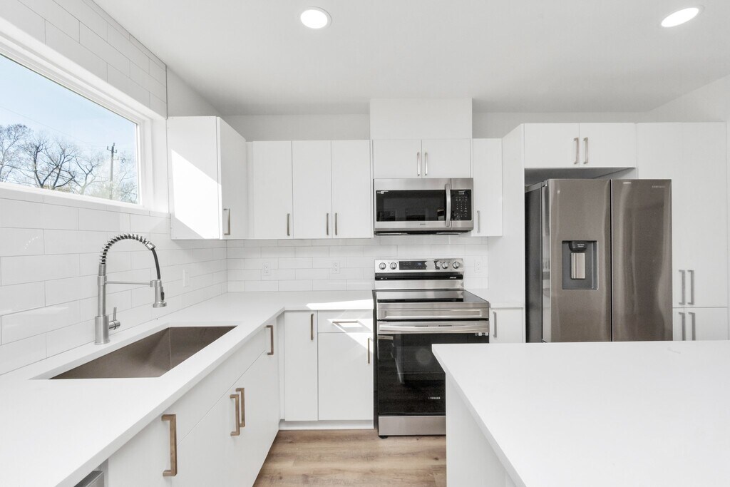 Modern 2-story duplex with 3 beds,2.5 baths,and private driveway. Open-concept layout with spacious primary suite on first floor. Features include luxury vinyl plank flooring,granite countertops,stainless steel appliances,large island,farmhouse sink,and great natural light. Upstairs offers two bedrooms and full bath. All appliances included. Schedule your private showing today. MLS ID 46111171