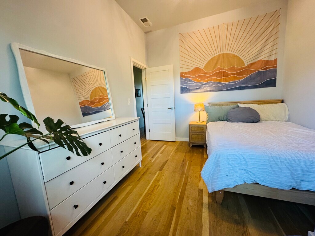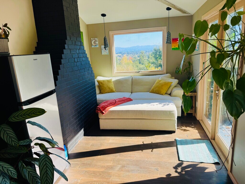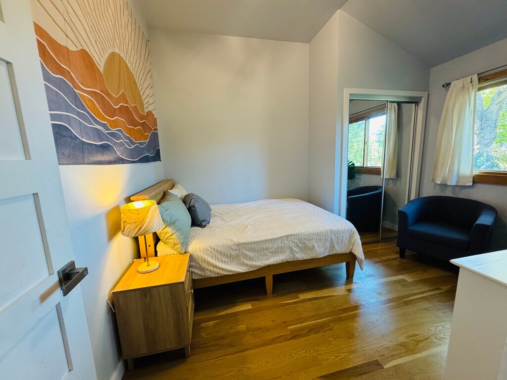 Furnished bedroom available in 4 bedroom 2 bath modern remodeled home. Available to women only. Sorry, no men. Large kitchen with lots of prep space, 2 refrigerators, 2 dishwashers, 48” stove. Tankless hot water, central heat /AC, gas fireplace, washer / dryer, hot tub, patio with firepit, sunrise views, garden space, ample uncovered parking. Room is available from February to June. $100 for all utilities (water, sewer, power, WIFI, trash). We’re an easy going couple in our 40s. We’ve lived with many housemates before and enjoy the company. We like to chat in common spaces and also highly respect people’s personal space and time. No need for forced connection. We work on developing the property and are in and out of the house a lot. We will be traveling for the spring so there might be other renters in our rooms. (We have the other two rooms in the house). You would be sharing a bathroom with one other renter and we share the other bathroom. We occasionally have company but it’s mostly just us. House is very peaceful and safe, filled with natural light. Sunrises are beautiful. Property is at the end of a country road near andys produce on shared property. We have 2 pet pigs, Pickles and Pixie. We work as property developers and are also relationship coaches and have spent many years in the healing world. We love backpacking, skiing, hot springing, dancing, travel, soccer, gardening, house projects, wine, coffee, family, celebrating, and all the good things in life. We are omnivores, keep a tidy house, but also very much live here. Sometimes theres personal items around or a few dishes in the sink. If you need things perfect this is not a good house for you. I would give us a B+ for cleanliness. We have a house keeper once a month for deep cleaning. Single occupancy. No pets. You must work outside of the home at least 3 days a week. Utilities $100 per month. Income requirement is $3k per month. Please DM me with some personal info about you. Your income, place of employment and schedule, move in/out date, interests, needs or concerns, and any other relevant info. Again no pets will be considered and it is single occupancy.