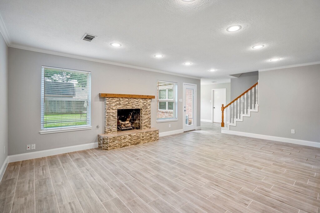 Welcome to this stunning two-story,FOUR BEDROOM home in Prestonwood Forest! Wood-look tile flows throughout the main living areas,while the kitchen impresses with white cabinetry,granite countertops,and stainless-steel appliances. Enjoy both a formal dining room and a breakfast nook,plus a spacious family room with fireplace overlooking the backyard. A versatile flex space on the first floor,enclosed with French doors,is ideal for a home office or playroom. The primary suite is located downstairs with a large en-suite bath and dual walk-in closets. Upstairs you’ll find three generous bedrooms and a Jack-and-Jill bathroom. REFRIGERATOR,WASHER and DRYER INCLUDED! Two-car garage,and a HUGE BACKYARD! BI-WEEKLY LAWN SERVICE IS INCLUDED IN THE RENT! and The home is zoned to highly rated Cy-Fair ISD. Prestonwood Forest amenities feature a community pool,tennis courts,and clubhouse,all just minutes from Hwy 249,Vintage Park,St. Luke’s Health,and Houston Methodist Hospital. MLS# 12269120