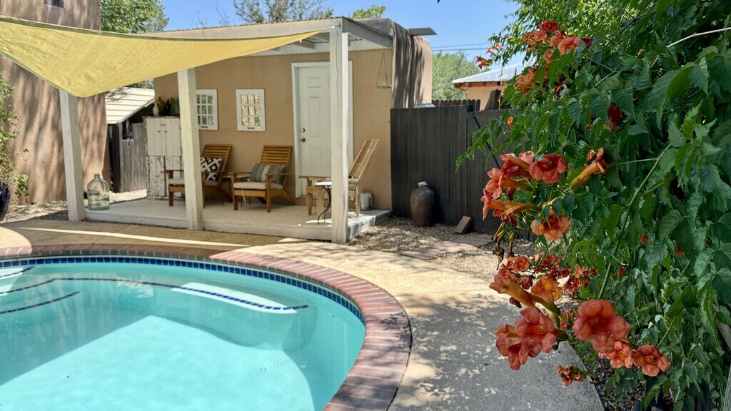 Artistic North Valley Adobe Compound with Pool, Hot Tub & Private Casita A rare rental opportunity! This exceptionally private, artistic adobe compound in the heart of the North Valley offers timeless charm and modern amenities. Property Highlights: Main House (2,063 sq ft): Two large Master Suites, each with a private bath, sitting area, and outdoor access. Detached Casita (785 sq ft): Full of style, great for a 3rd bedroom, office, or studio. Interior Features: Classic brick floors, beamed ceilings, and a kitchen with unique reclaimed barn wood cabinets. Outdoor Amenities: Highly private grounds, meandering gardens, towering trees, a sparkling free-form pool, and a hot tub. Parking: Generous off-street parking for 4 vehicles. Rental Requirements & Availability Monthly Rent: $3,500 Availability: Property will be available starting December 1st. Application Fee: A non-refundable $32 fee is required for the background check for each adult applicant. Income Requirement: Applicants must demonstrate a verifiable gross monthly income of 2.5X the monthly rent or greater.